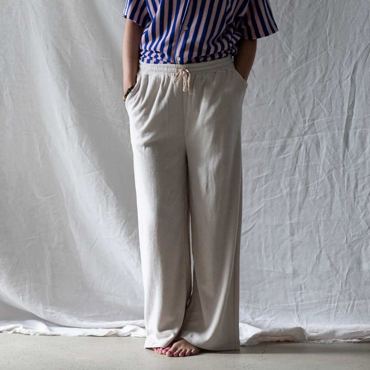 Med både en elastisk linning og en bomuldssnor giver bukserne dig mulighed for at stramme eller løsne pasformen efter behov.