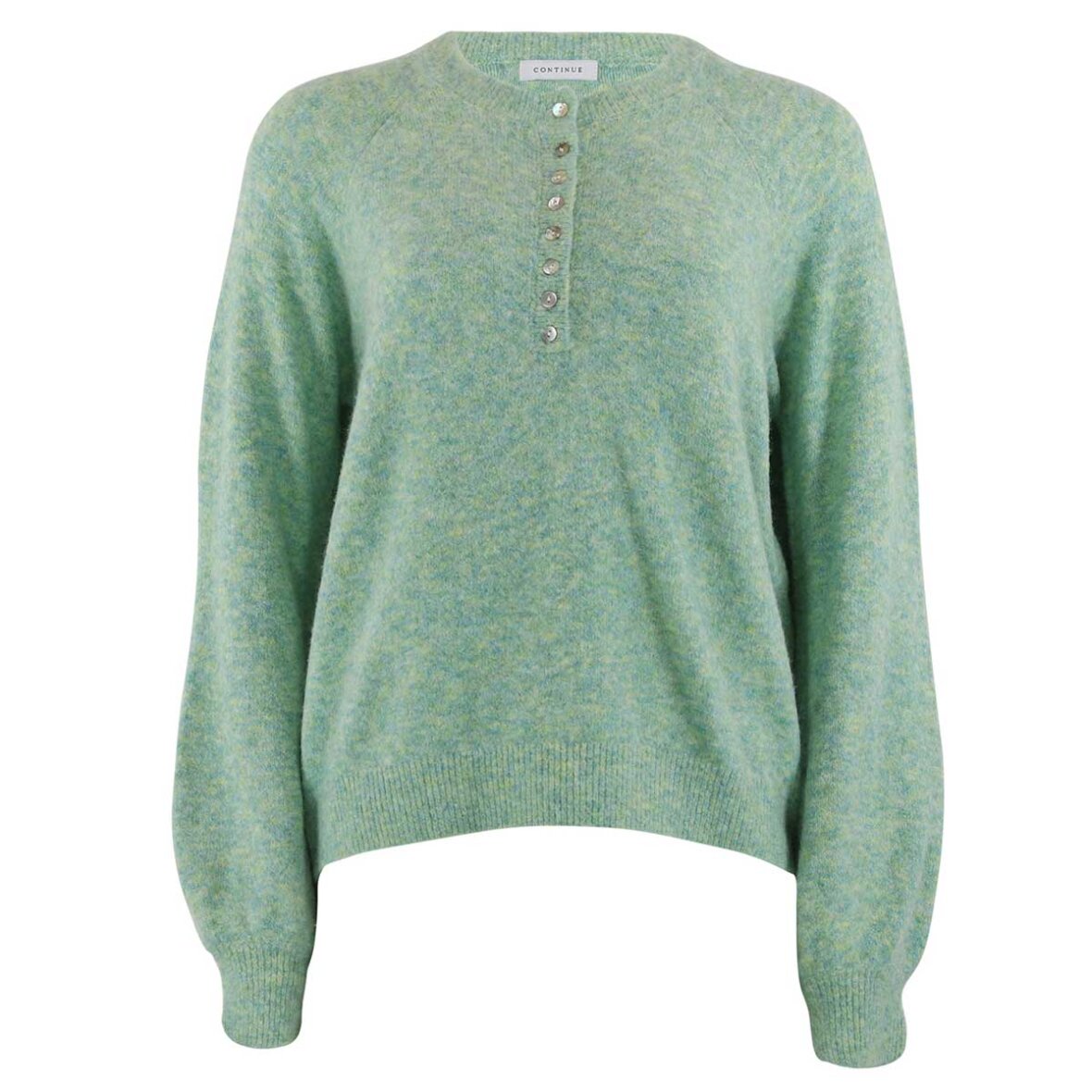 Lilja strik fra Continue Copenhagen. Her får du en smuk, ensfarvet strik. Denne strik er med lange ærmer, med en rund halsudskæring og med knapper øverst på brystet. Denne strik er dejlig behagelig, at have på.
