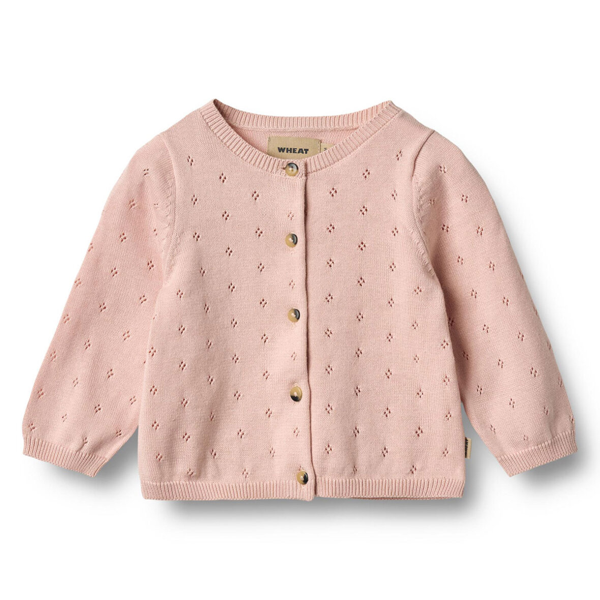 Wheat's strik er en sand klassiker i løbet af de skiftende sæsoner, da det er blødt og behageligt for baby at have på uden nogen form for kløe. Wheat's strik har et klassisk look med en afslappet pasform, som gør det let at style udover en body eller kjole. Den er også perfekt som et ekstra lag under jakken.