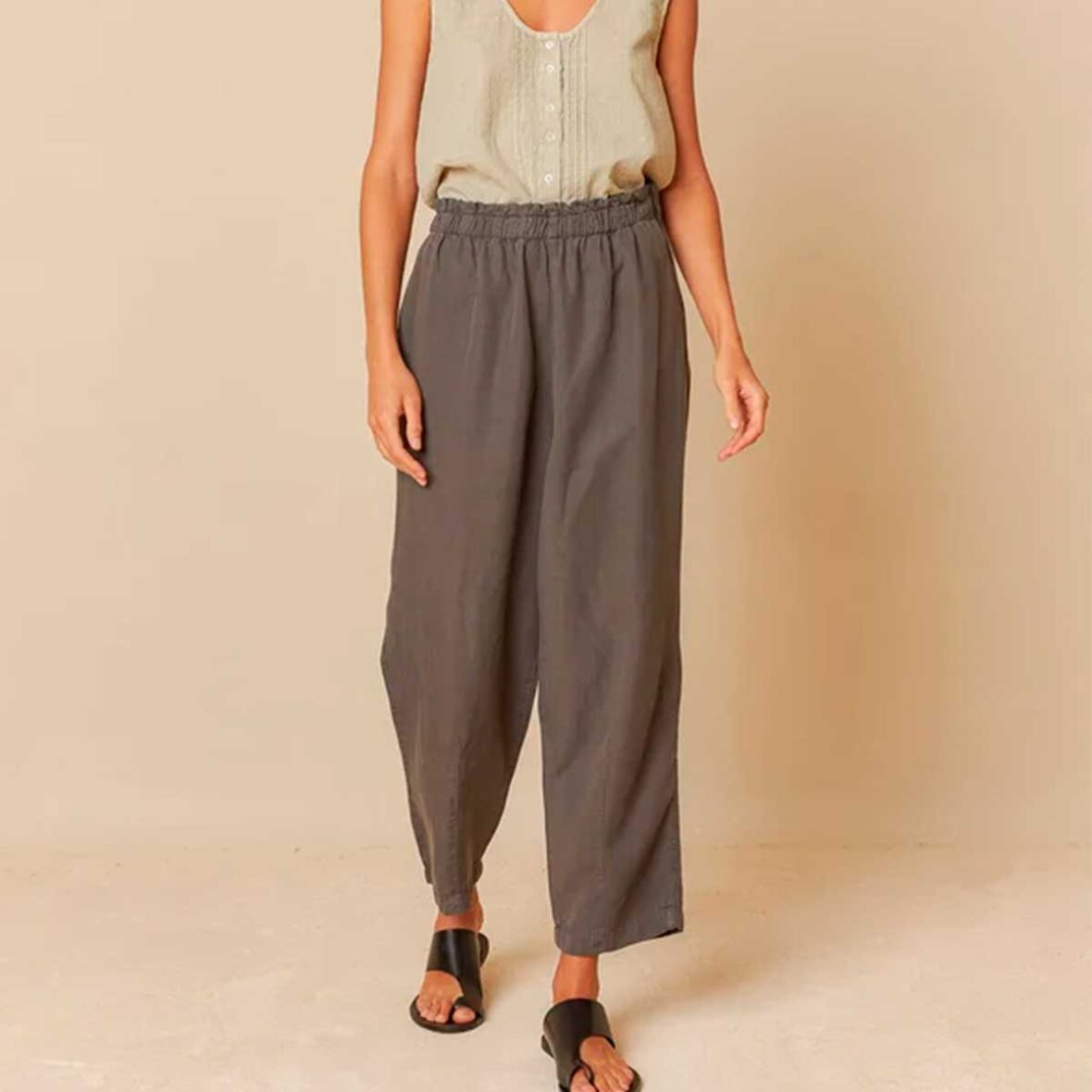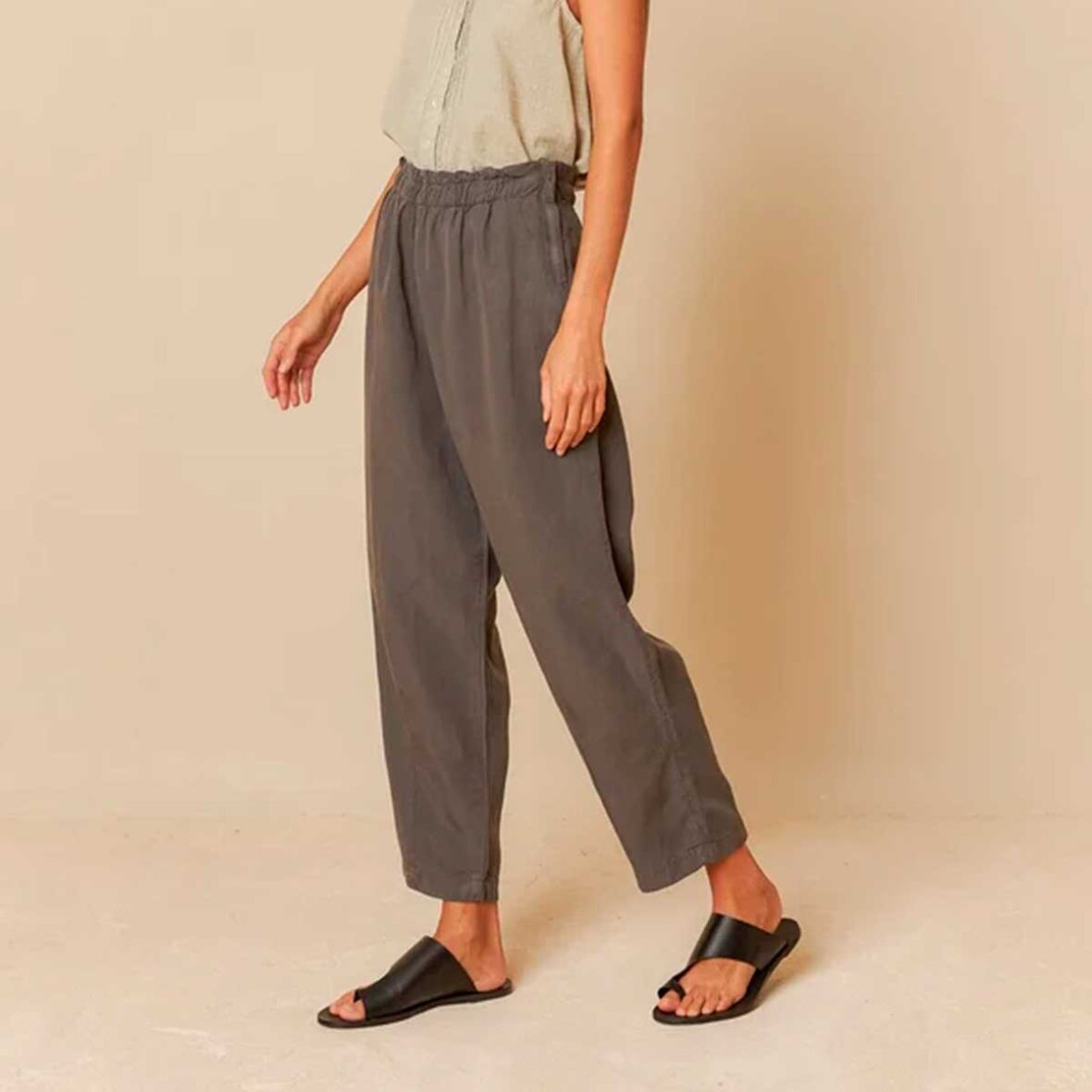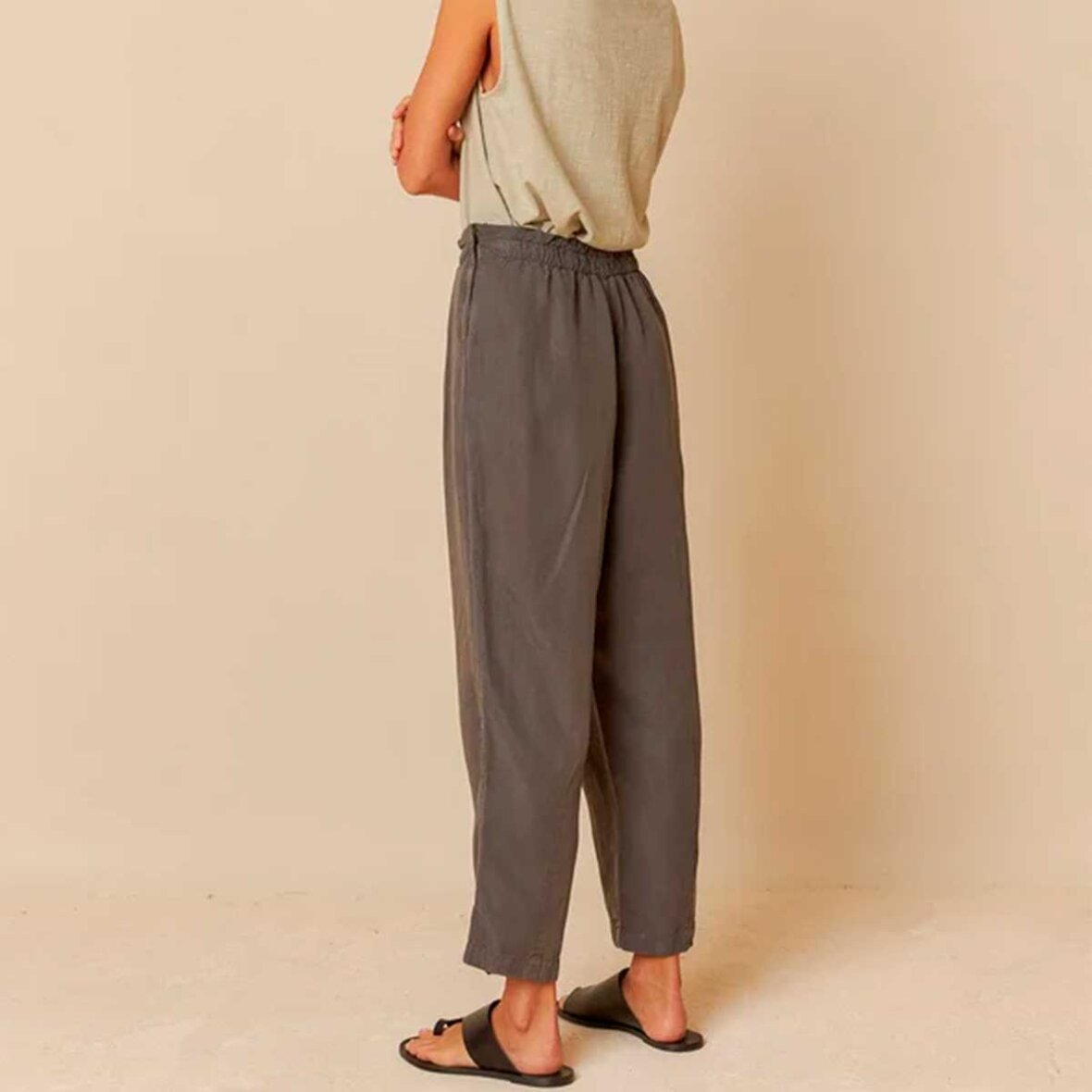 Bukserne er i en skøn blanding af hør og lyocell og falder super elegant, men giver stadig et afslappet look med elastik i taljen. Bukserne lukkes med lynlås i venstre side.