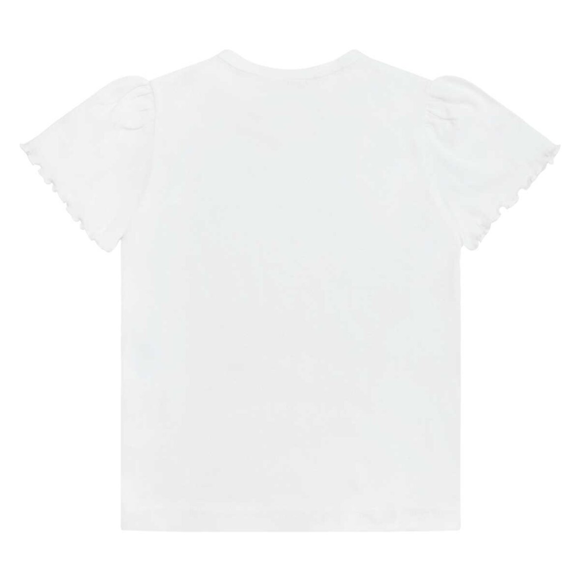 Alma T-shirt fra Hust and Claire. Her får du en sød, ensfarvet T-shirt med lidt hulmønster. Denne T-shirt er med korte ærmer, som afsluttes med en lille fin kant. T-shirten lukkes med en enkelt knap i nakken.