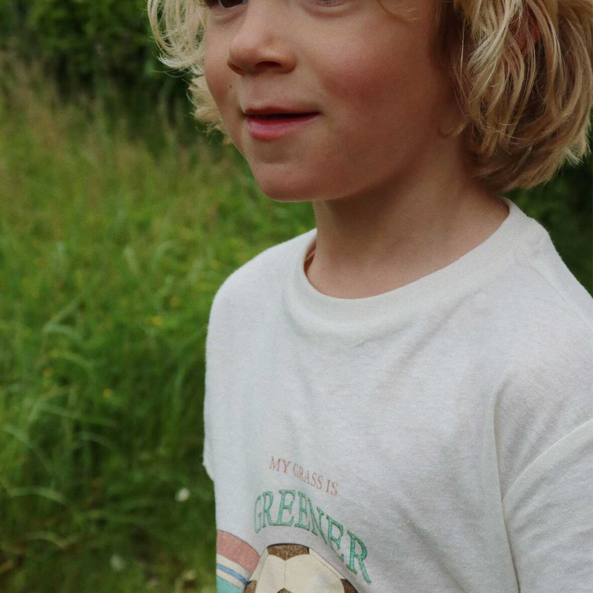 Størrelserne op til 18 måneder har trykknapper ved skulderen, så T-shirten er nem at få på.
