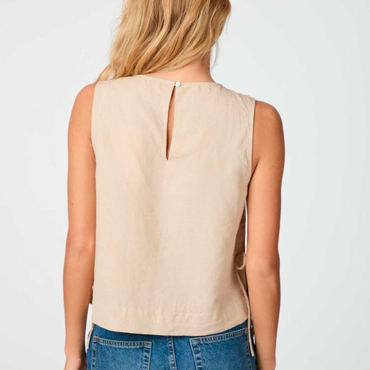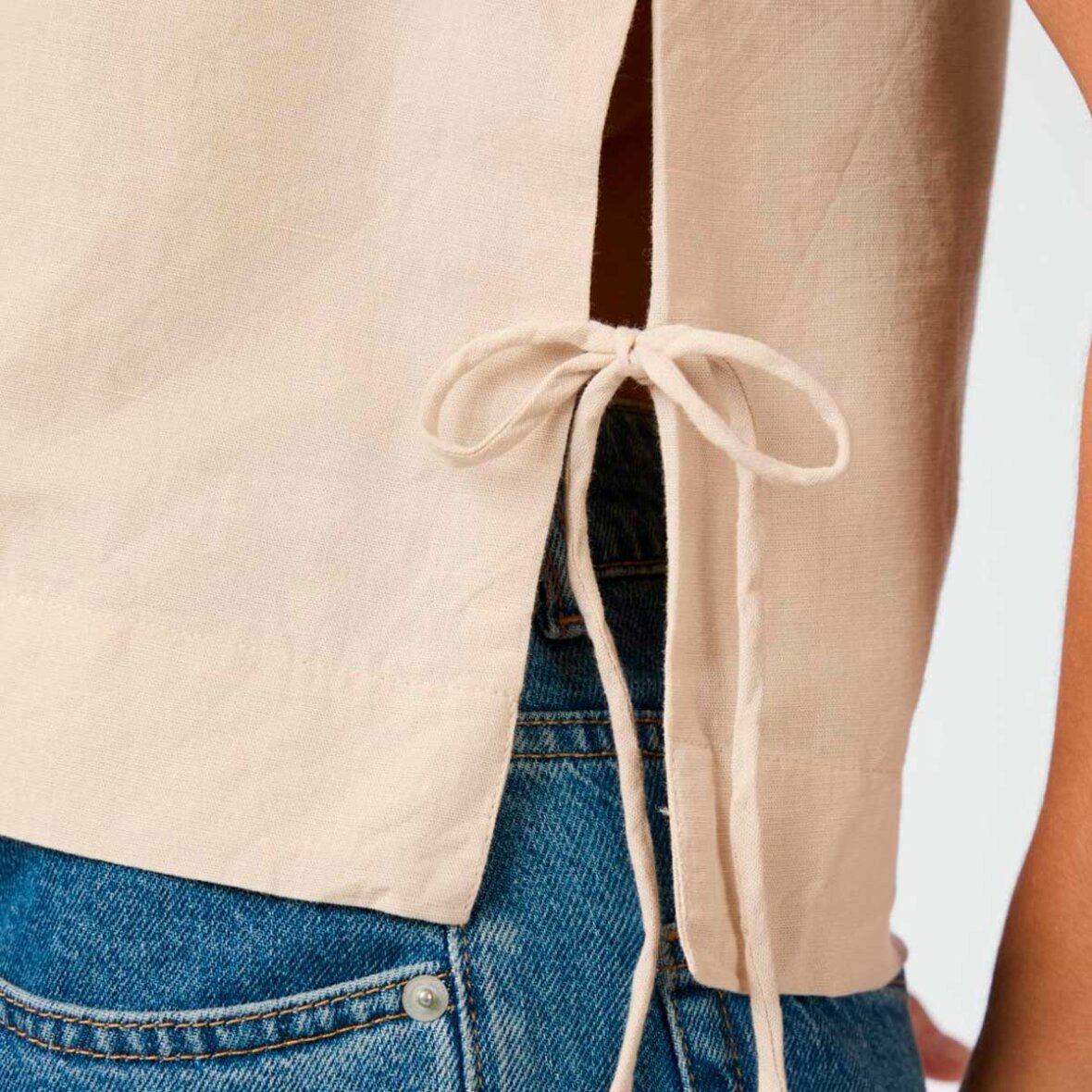 Fin kort top med et clean look. Toppen har slids i sidesømmen og bindebånd.