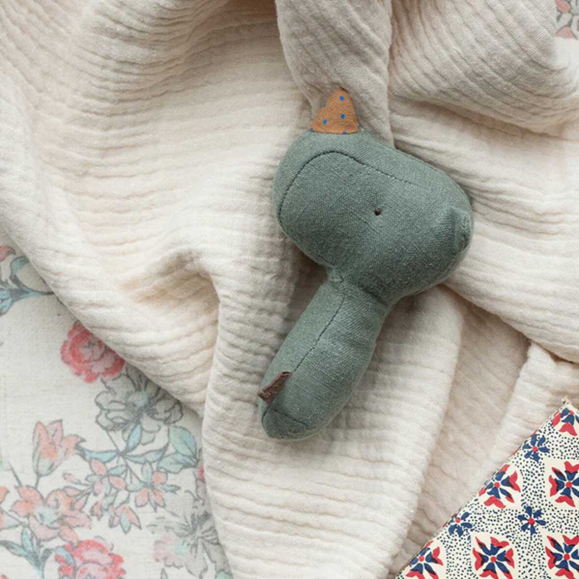 Rangle - næsehorn fra Maileg. Her får du en sød rangle som er formet perfekt til en baby hånd. Ranglen har en stimulerende rangle-lyd. Ranglen er fremstillet i blødt stof.