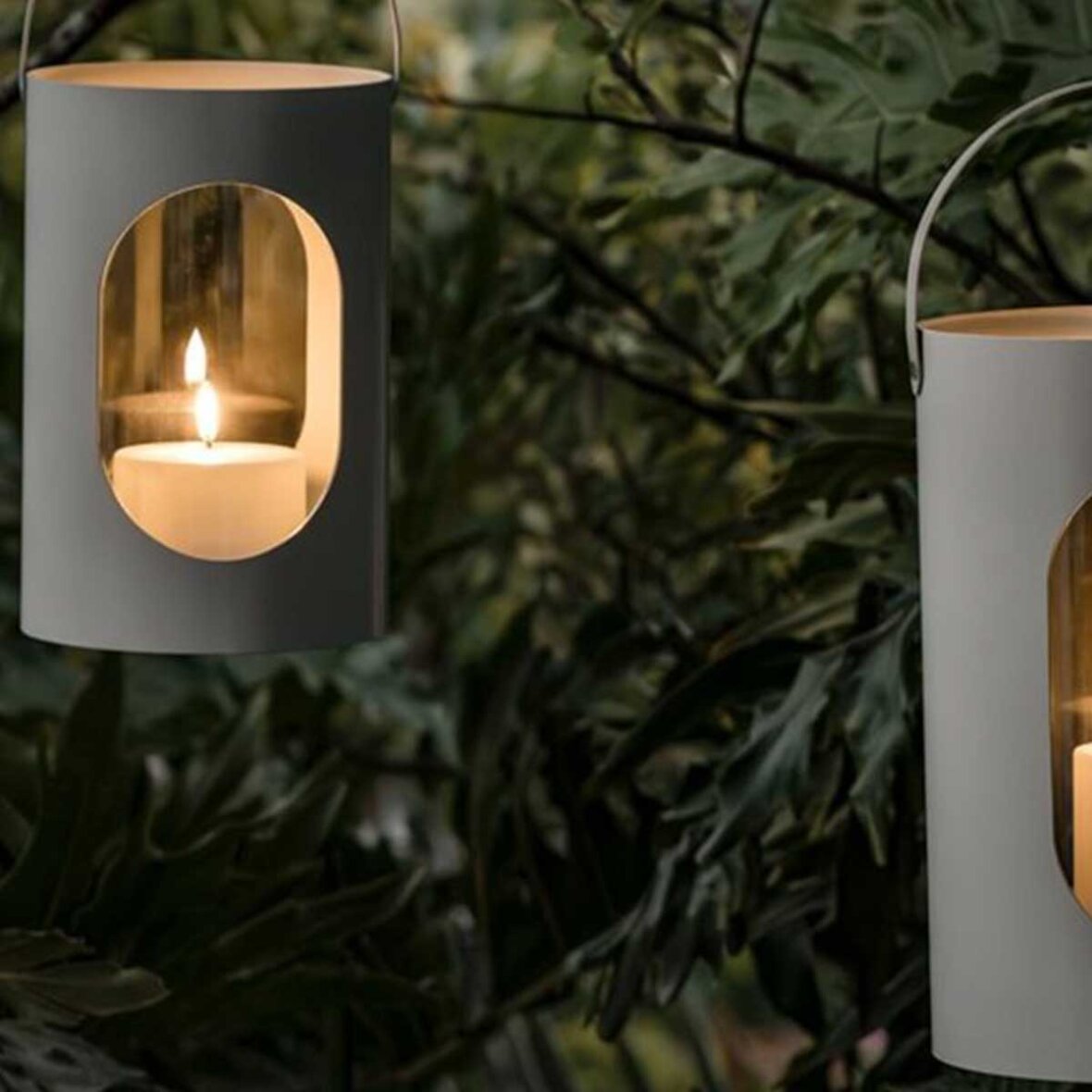 Lanternen tåler vind og vejr, og den hule bund sørger for, at vand kan løbe fra. Der medfølger desuden et beslag, så den kan hænges op i en gren eller på terrassen. For at forlænge levetiden anbefales det dog at tage den ind i kraftig regn eller sne. Brug den sammen med Uyunis udendørs LED-bloklys (15–20 cm høje) for det flotteste lys.