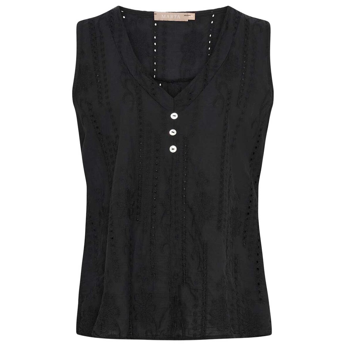 Giv din garderobe et elegant løft med PERLA Top i klassisk sort fra Marta du Chateau. Denne top kombinerer et stilrent, skandinavisk design med et let og luftigt udtryk, som gør den ideel til både hverdag og festlige lejligheder. Den løstsiddende pasform og de fine detaljer giver et feminint og afslappet look, der passer til enhver anledning.