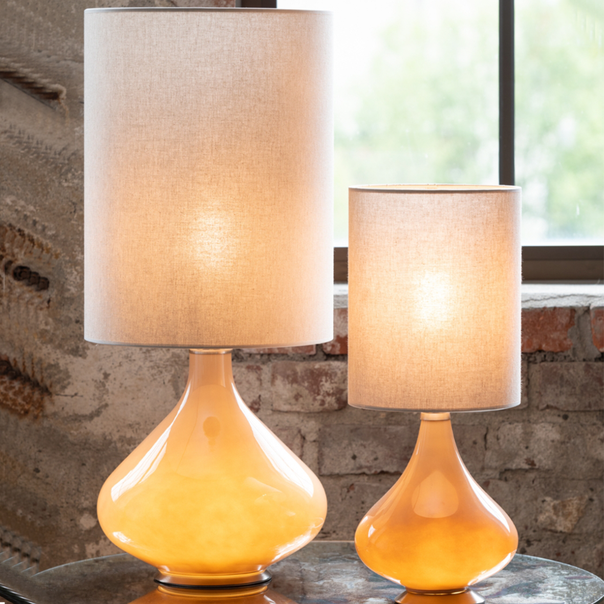 De skønne Flavia lamper kan både lyse i lampefoden og i skærmen. Lampefodens lys skaber en hyggelig stemning i hjemmet, når mørket falder på udenfor. Ønsker du mere lys, kan du både tænde lampeskærm- og fod.