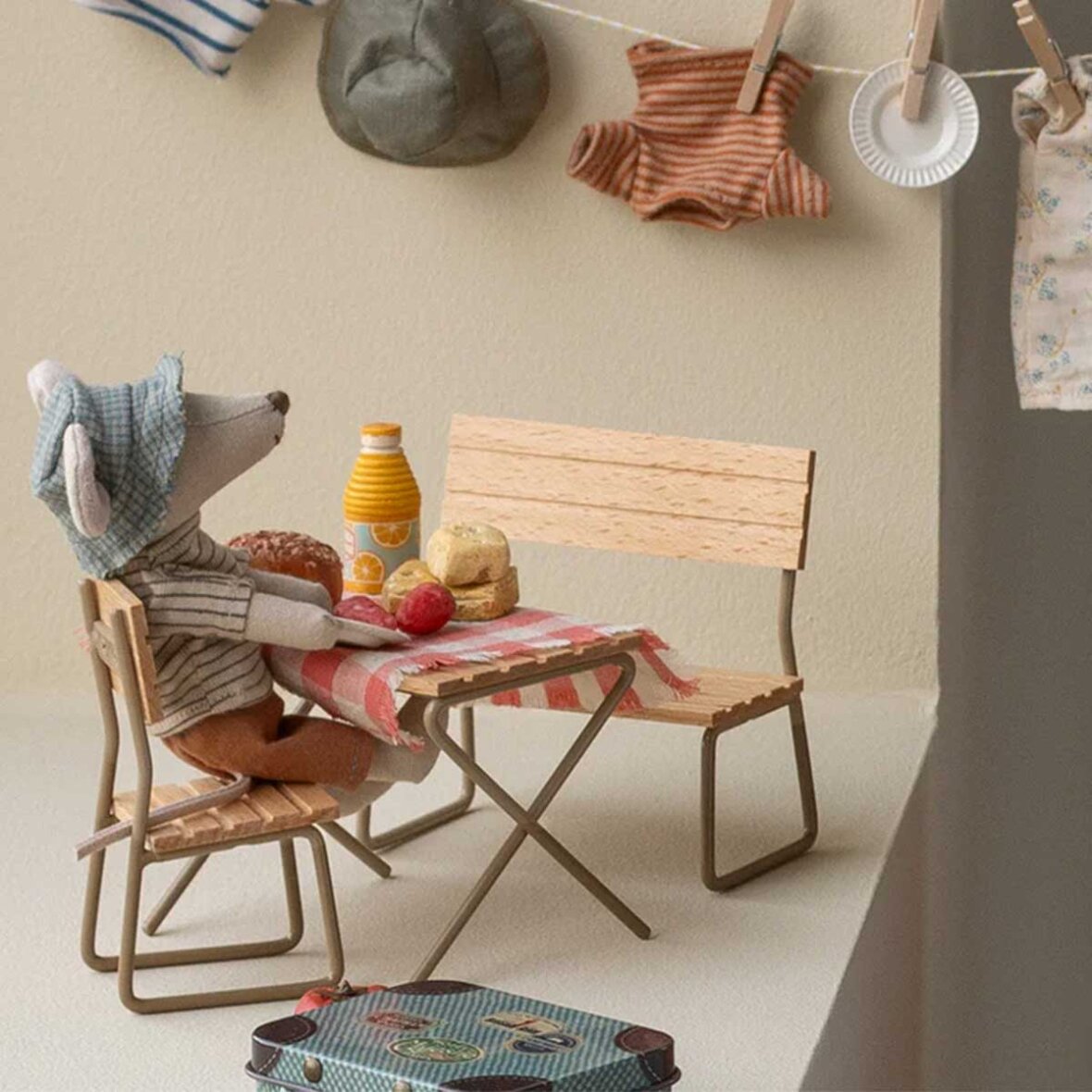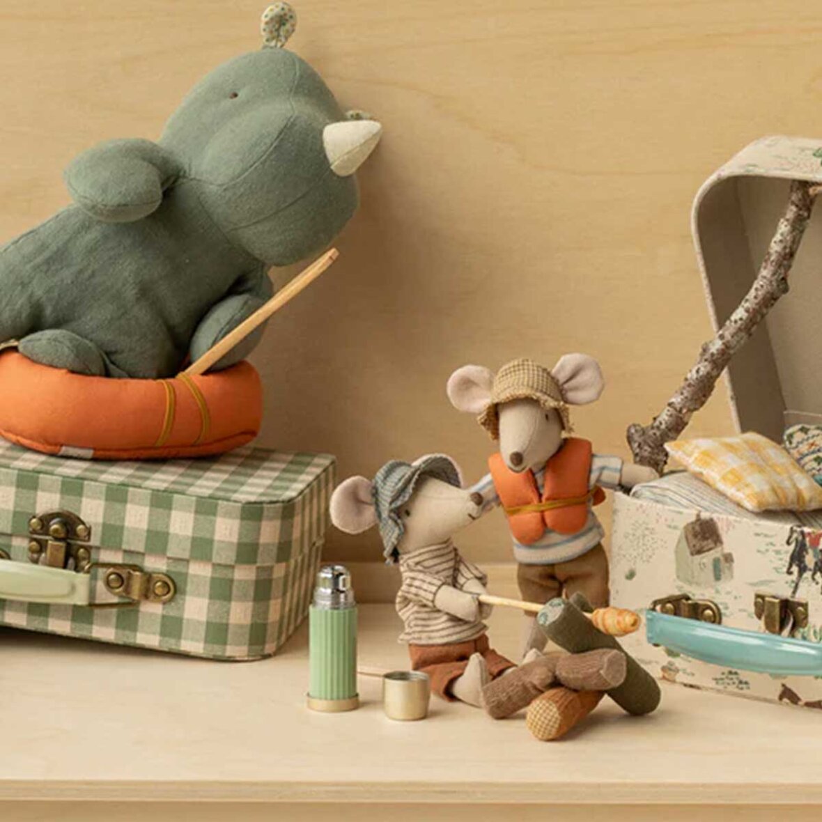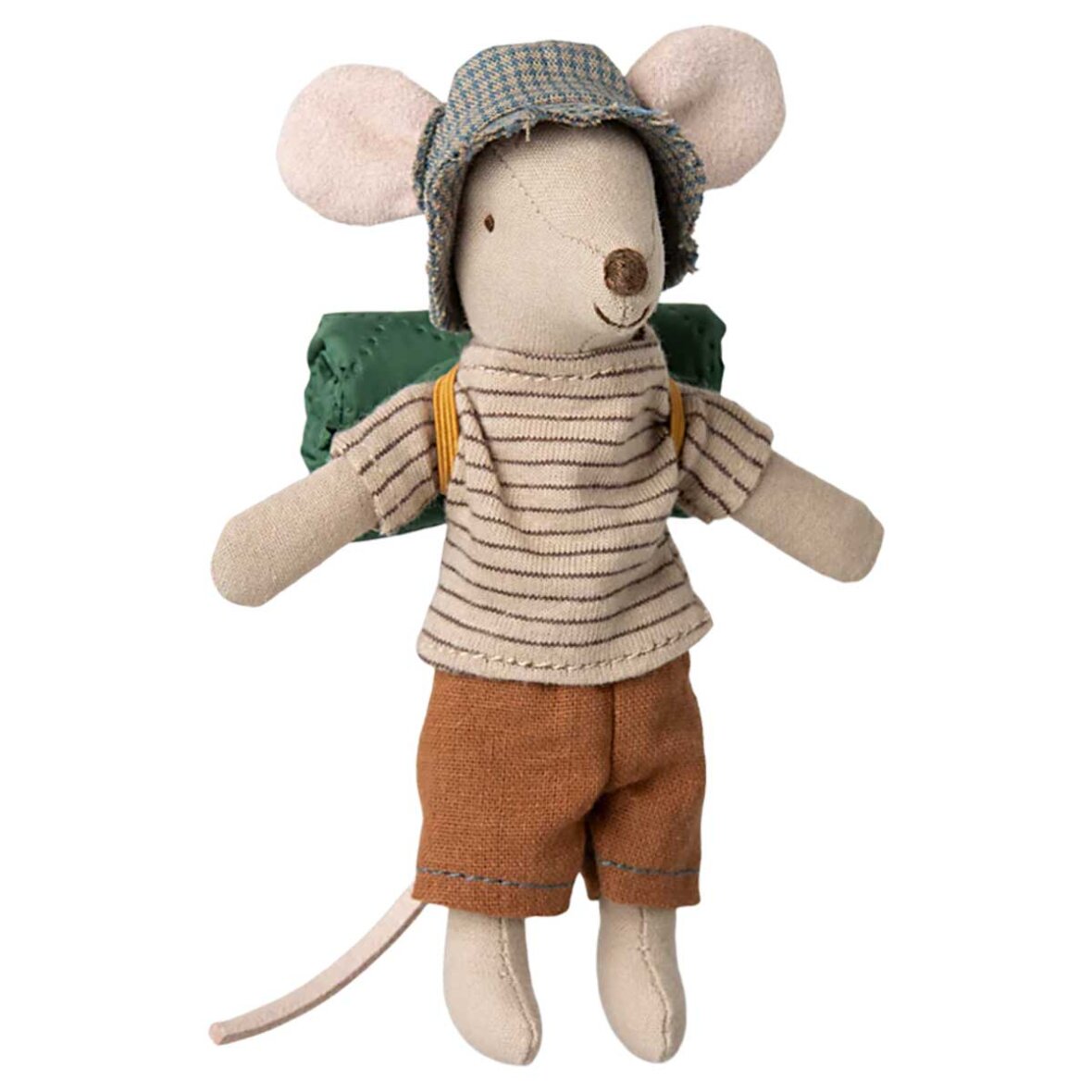 Denne eventyrlystne mus er klar til vandretur i den vilde natur. Hun er udstyret til flere dages vandring og har sin sovepose med til nætter under stjernerne. Med magneter i hænderne kan hun holde fast i tilbehør – og du kan udvide legen med flere dele fra vandremus-kollektionen.