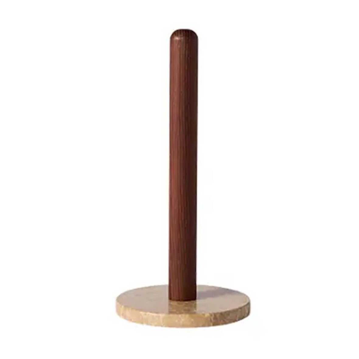 Stilren og funktionel køkkenrulleholder fra MUUBS’s Yami‑serie i brun udførelse. Den er lavet af karboniseret asketræ med en base i lys marmor. Brugervenlig og dekorativ løsning til køkkenet.