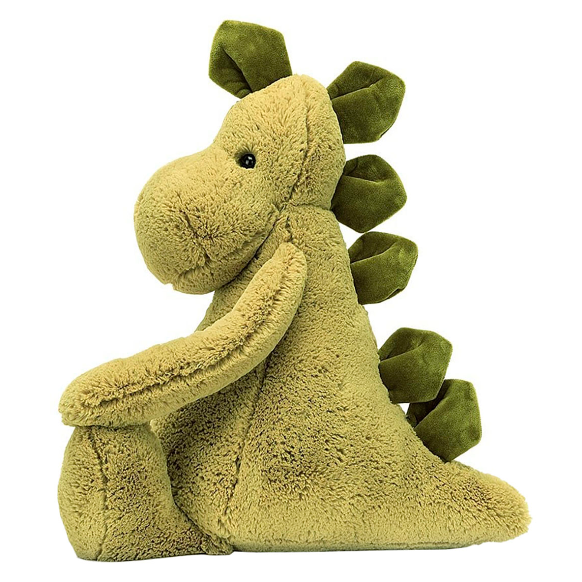 En meeeget stor dinosaur ven fra Jellycat. Kommer med den blødeste mave og er perfekt at sidde sammen med, når man skal lære at sidde selv. Han har en lysegrøn farve med mørkegrønne bløde pigge ned langs ryggen. Han kan også bruges som puttemakker eller til andet leg.
