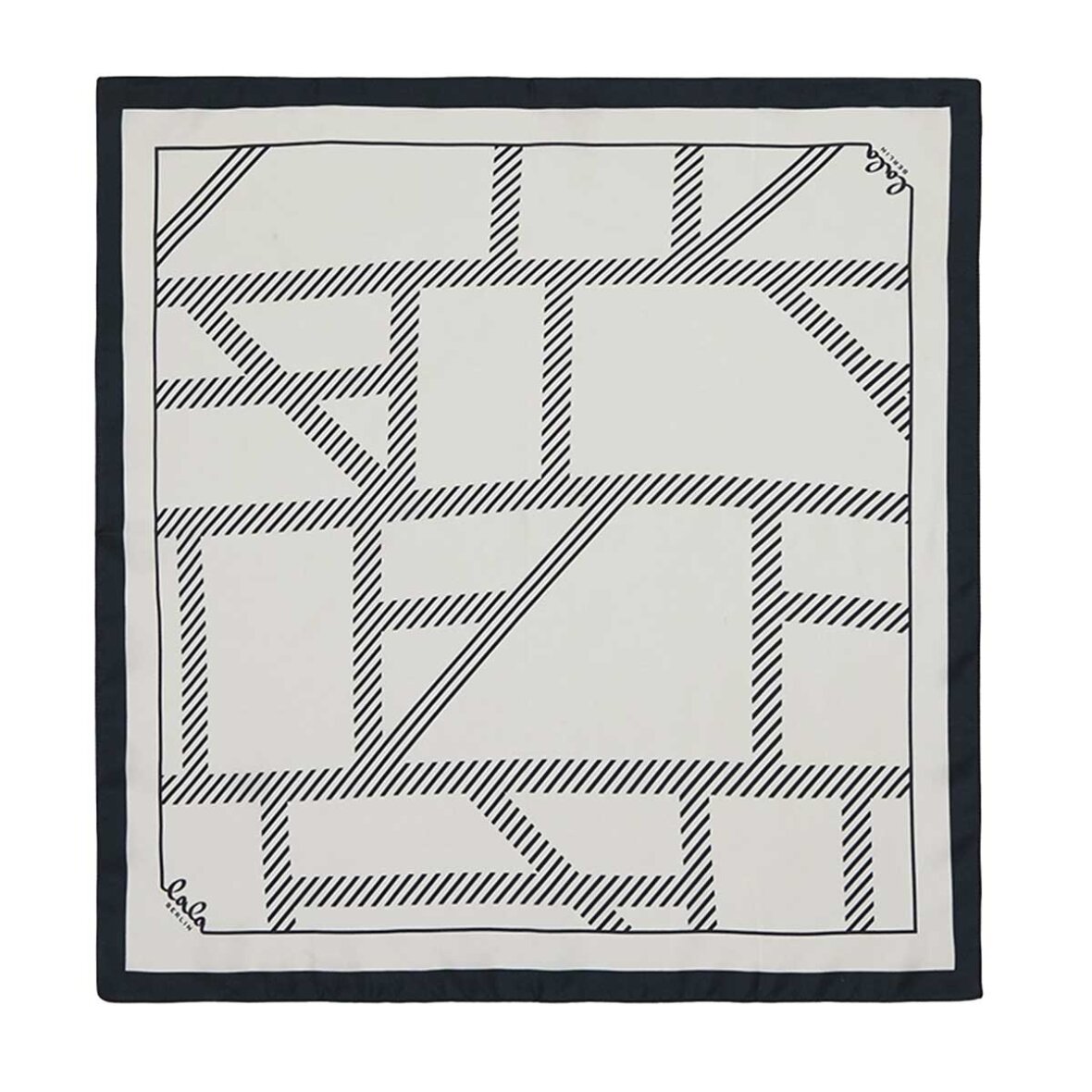 Eksklusivt silketørklæde i et klassisk sort-hvidt mønster, der forener elegance og modernitet. Den glatte, lette silke giver et luksuriøst udtryk og kan styles på mange måder, fx om halsen, i håret eller som accessory til jakken.