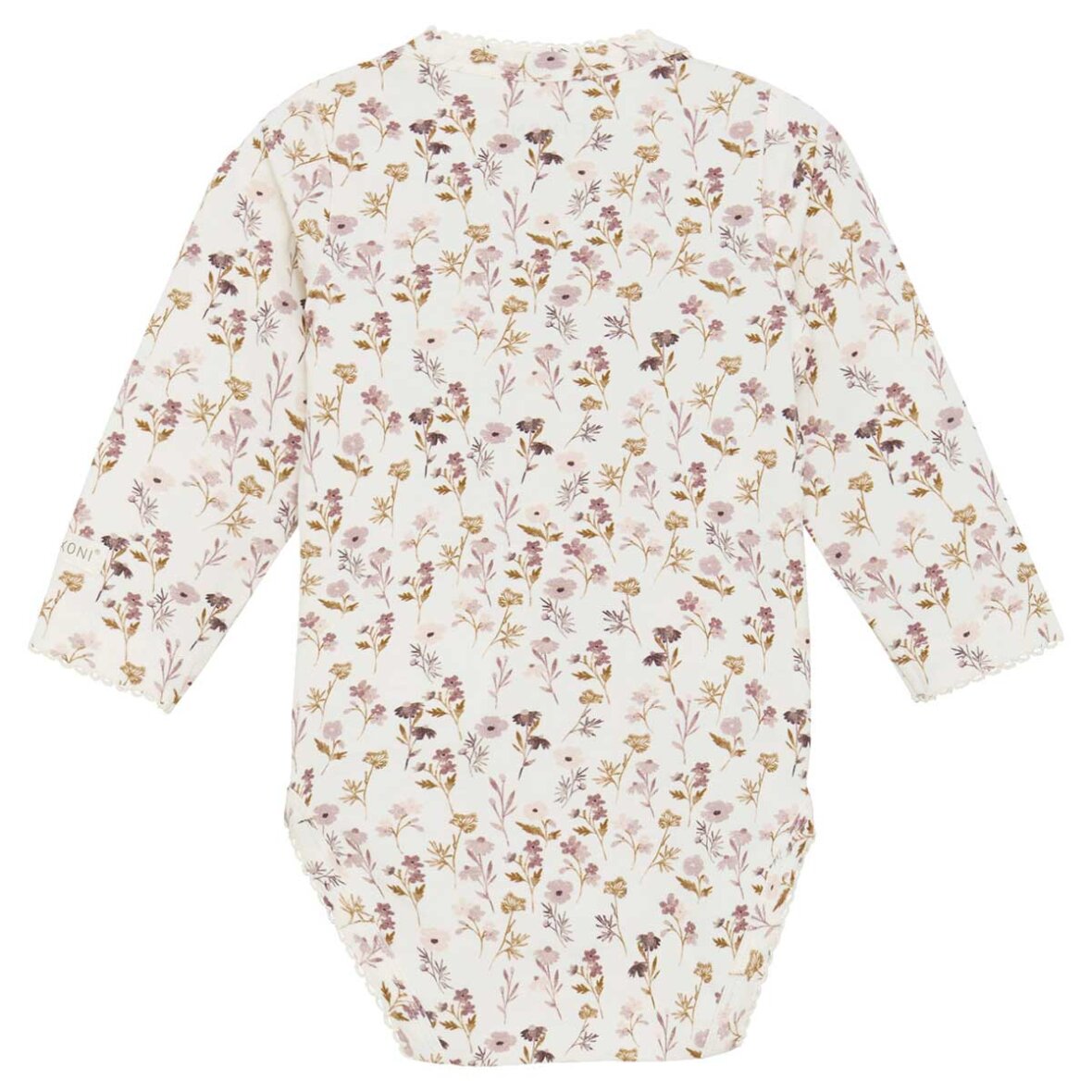 Langærmet wrap-around body fra FIXONI med et fint all-over print. Bodyen åbnes med praktiske trykknapper foran og mellem benene, hvilket gør den nem at tage af og på – perfekt til både hverdag og nat. Den bløde kvalitet sikrer høj komfort og bevægelsesfrihed for de små.