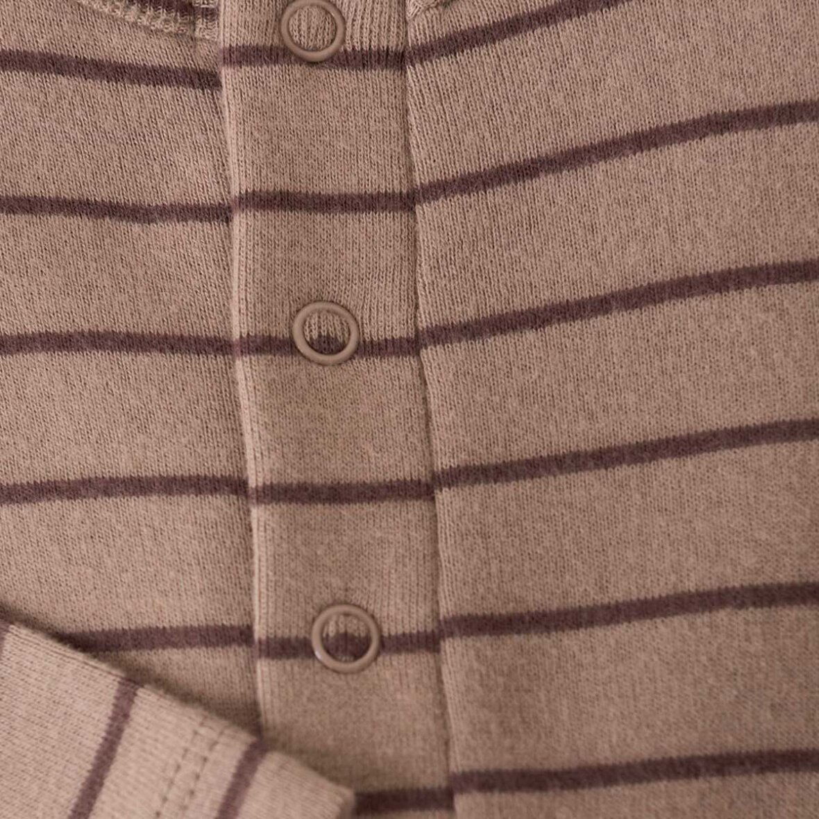 Blød, stribet heldragt fra FIXONI med fødder, der holder de små varme. Dragten lukkes foran med praktiske trykknapper, så den er nem at tage af og på. Den er dejligt blød og behagelig at have på – perfekt til både leg og lur.
