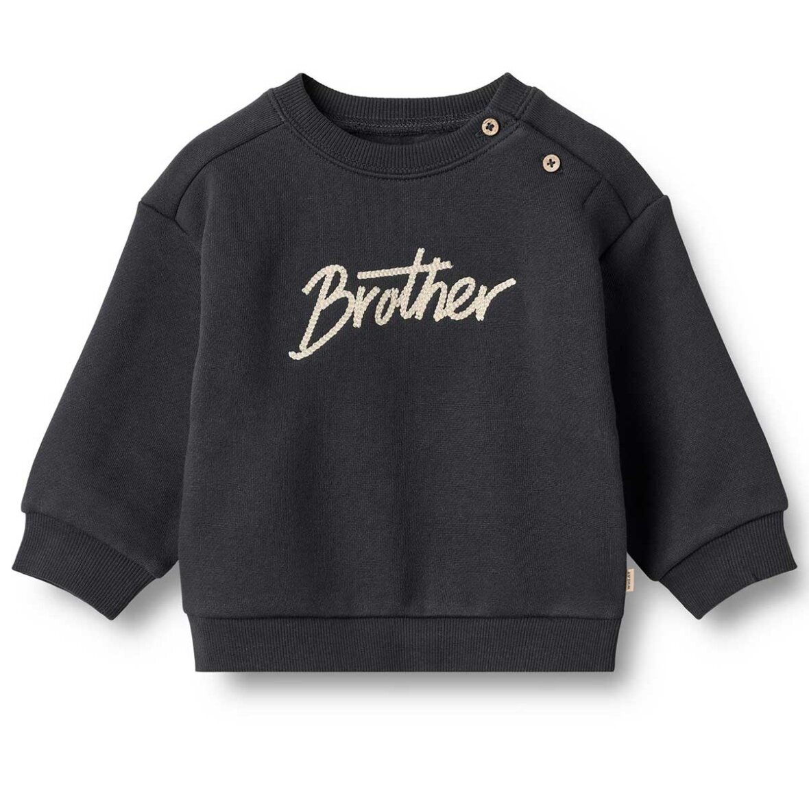 Langærmet sweatshirt til baby i blødt, økologisk bomuld med et fint tekstprint foran. Sweatshirten har en normal til løs pasform og ribkant i halsudskæring, ved manchetter og forneden for ekstra komfort og holdbarhed. Knapper på den ene skulder gør det nemt at tage den af og på.