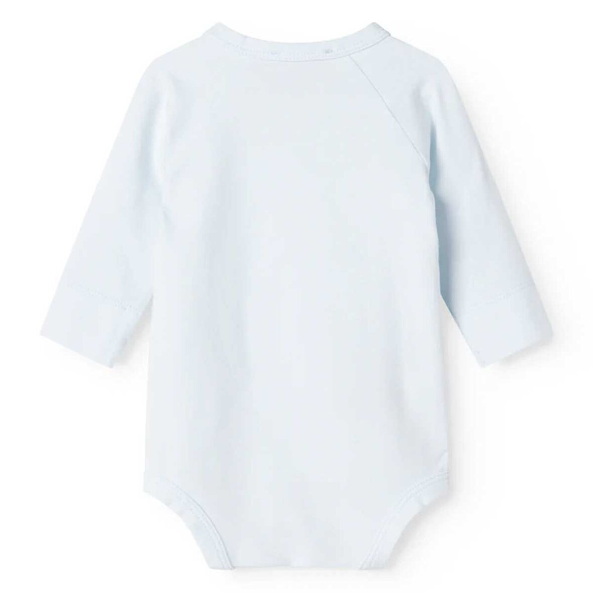 Langærmet bodystocking til nyfødte med smart slå-om-lukning.