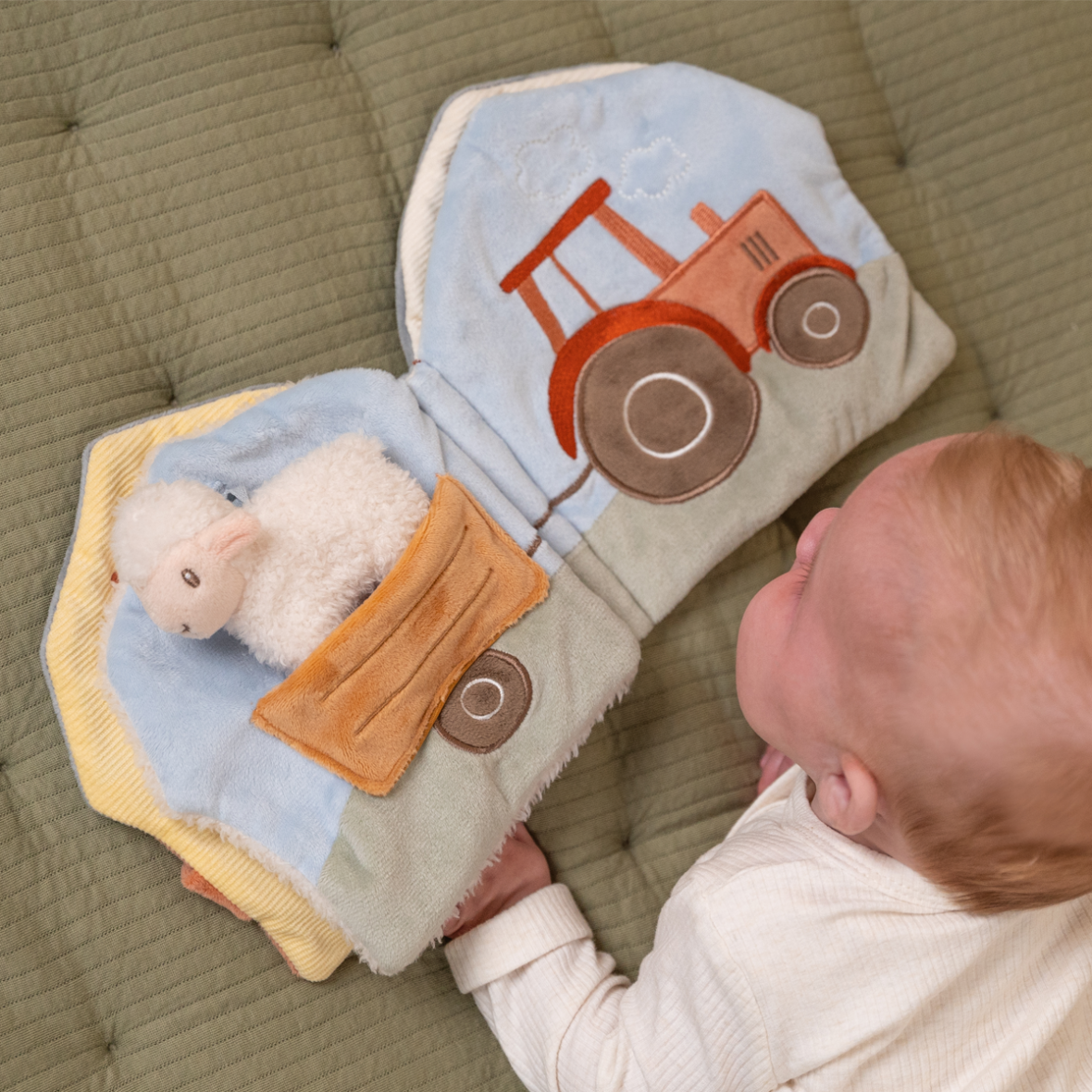 Denne farverige aktivitetsbog formet som en bopndegårdslade gemmer på en verden af sjove overraskelser for de mindste. Fyldt med forskellige dyr, køretøjer, teksturer, små gemte elementer, spejl, rangle og fine mærkater der er sjove at pille ved. Bogen er designet til at stimulere barnets sanser og styrke hånd-øje-koordinationen gennem leg og udforskning.