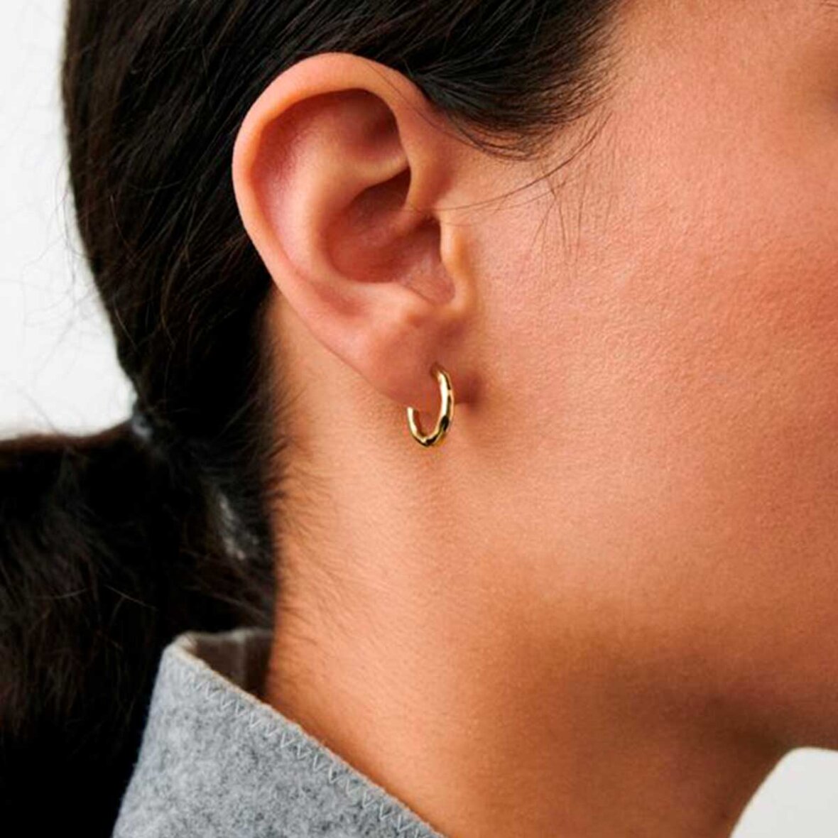 Disse fine, håndlavede huggies har et blødt og organisk formsprog, der elegant afrunder øreringen og skaber en levende, reflekterende overflade. Et stilfuldt valg til dig, der ønsker en diskret, men iøjnefaldende detalje i dit look.