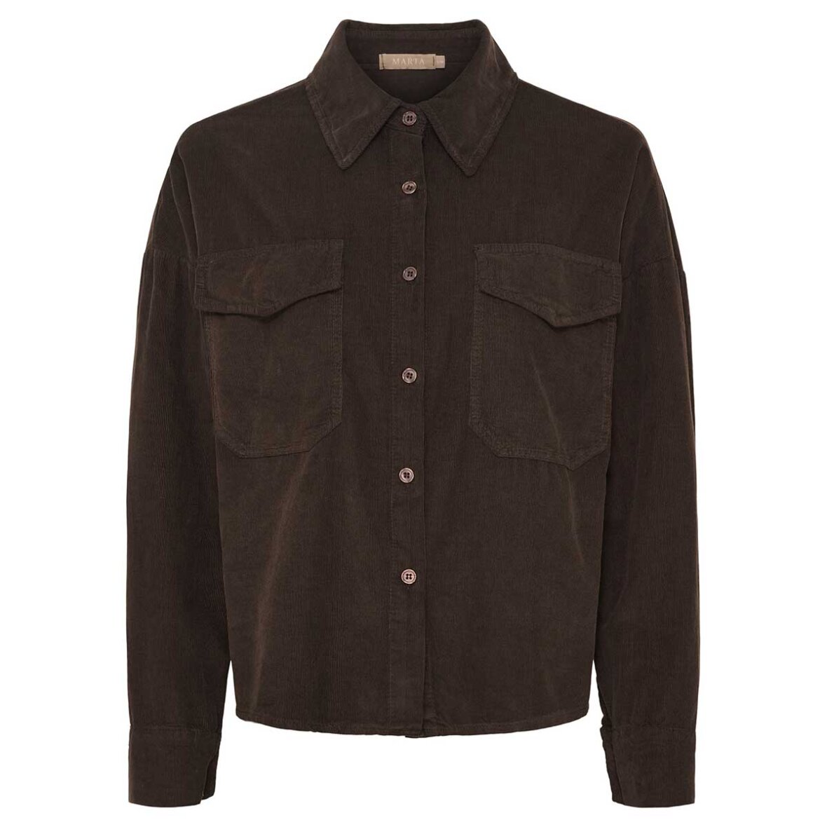 Birdie skjorte fra Marta Du Chateau. En enkel og stilren skjorte i den mørke, jordnære farve Moro. Skjorten har en løs pasform, lange ærmer og en diskret knaplukning. Ideel til både arbejde og weekend, og nem at style med både jeans og nederdele.
