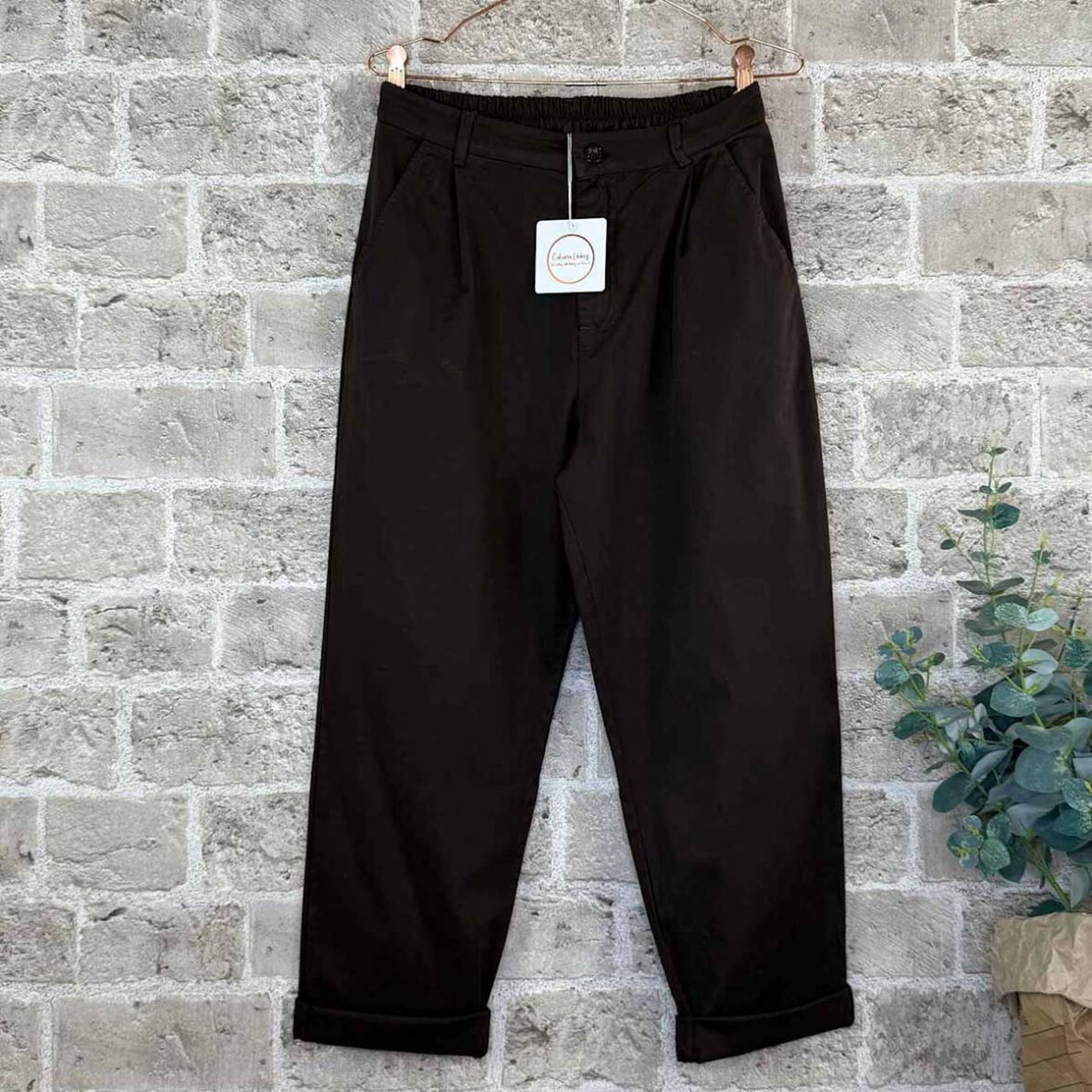 Twill bukser med bred pasform, bæltestropper og elastik i taljen for ekstra komfort og justerbarhed. Et alsidigt valg, der kombinerer stil med funktionalitet.