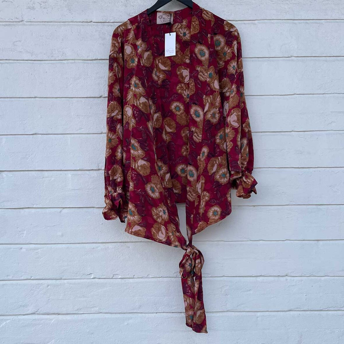 Da blusen er lavet af materiale med historie, kan der forekomme små pletter, løse tråde eller fint slid — betragt det som kærlige spor fra sariens tidligere liv.