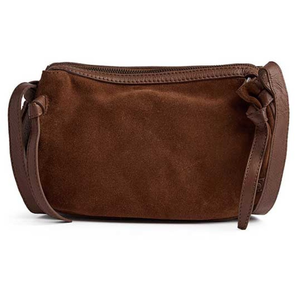 Denne crossover-taske i blødt ruskind forener tidløs elegance med et strejf af personlighed. Det enkle design gør den nem at style til både hverdag og særlige anledninger. Tasken har lynlåslukning i toppen, som beskytter dine ejendele, og størrelsen er perfekt til det mest nødvendige – mobil, nøgler, kort og småting. De fine bindebåndsdetaljer i siderne giver et feminint touch, der fuldender det klassiske look.