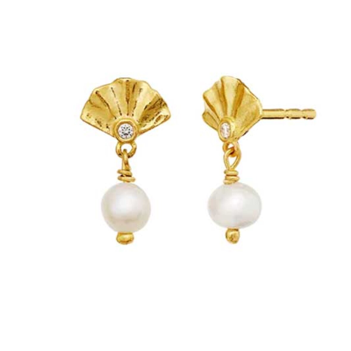Materiale: Genanvendt sterling sølv (925) belagt med 18K guld, ferskvandsperle, hvid zirconia