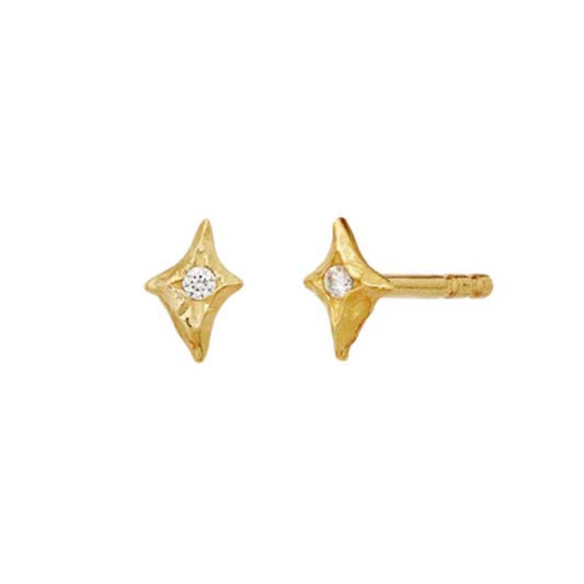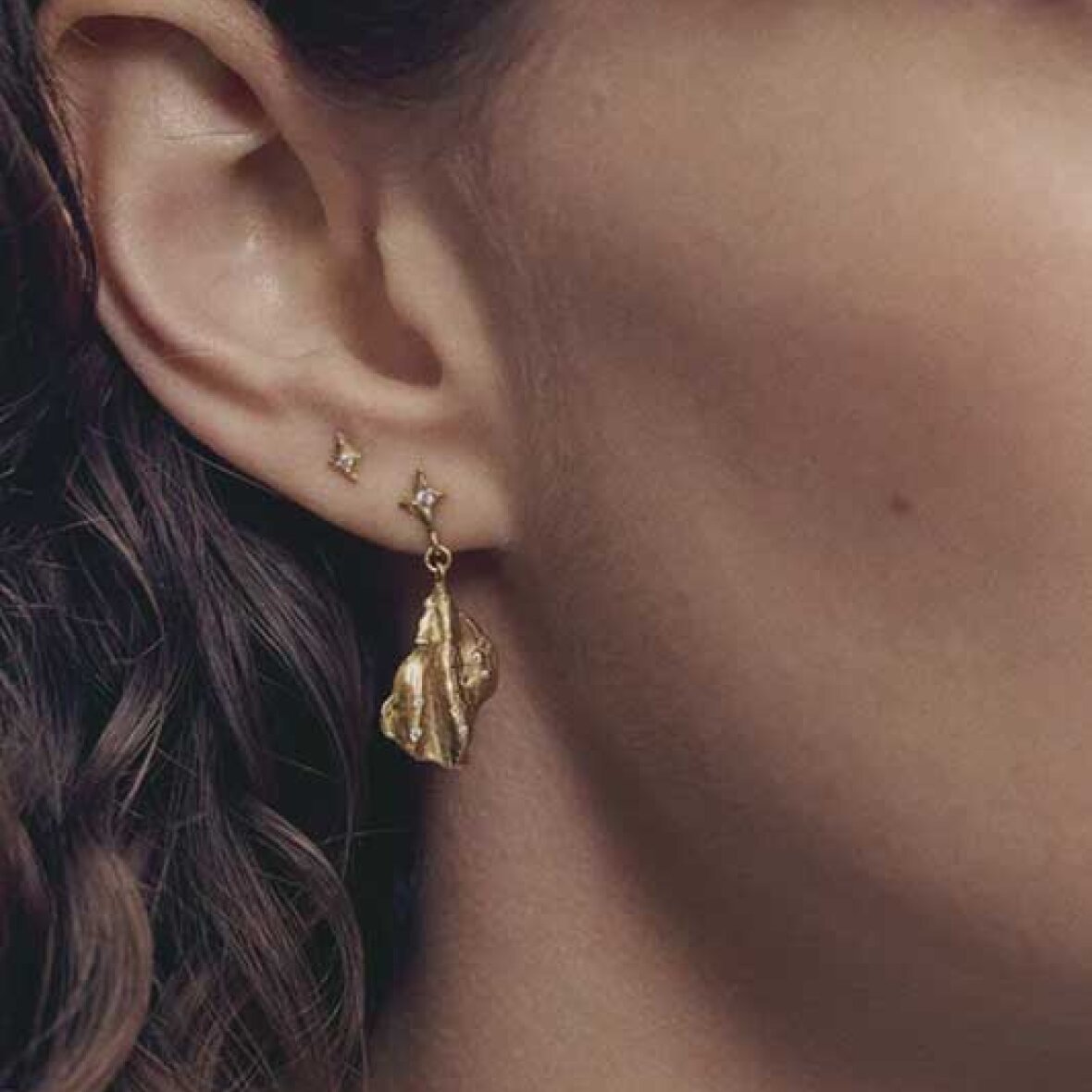 Sylfide Øreringe – Minimalistisk elegance møder tidløs skønhed. Disse delikate ørestikker fremhæver subtil ynde med en enkelt glimtende hvid zirconia, der udstråler både klarhed og styrke. Den underspillede, men raffinerede æstetik gør Sylfide Øreringe perfekte til både hverdag og særlige lejligheder, hvor du ønsker et subtilt, men sofistikeret touch. Den 18K guldbelagte overflade på genanvendt sterling sølv fremhæver stenen og giver øreringen et elegant og holdbart finish, som vil komplementere enhver stil.