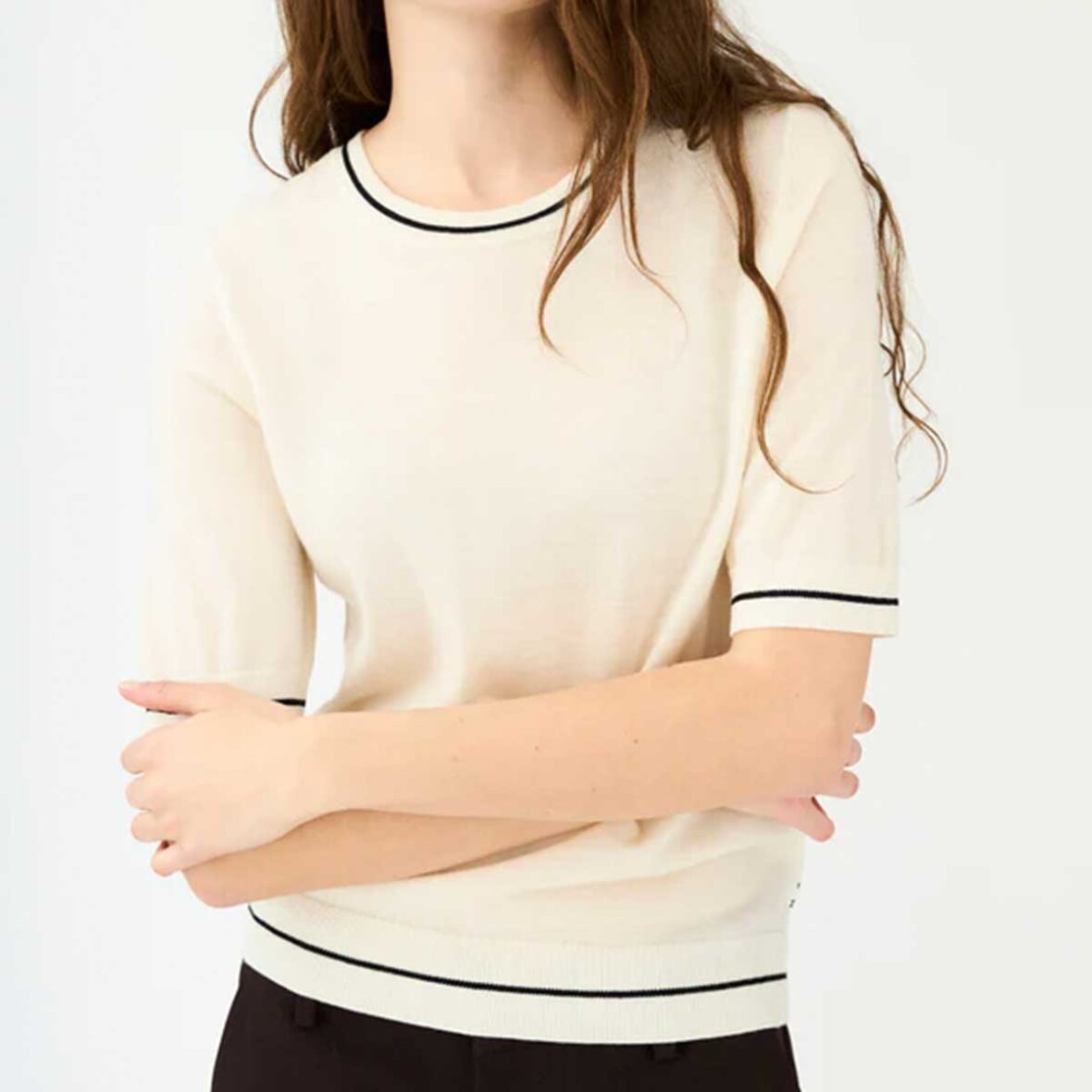 ESSEX CONTRAST SS O-NECK KNIT | ECRU