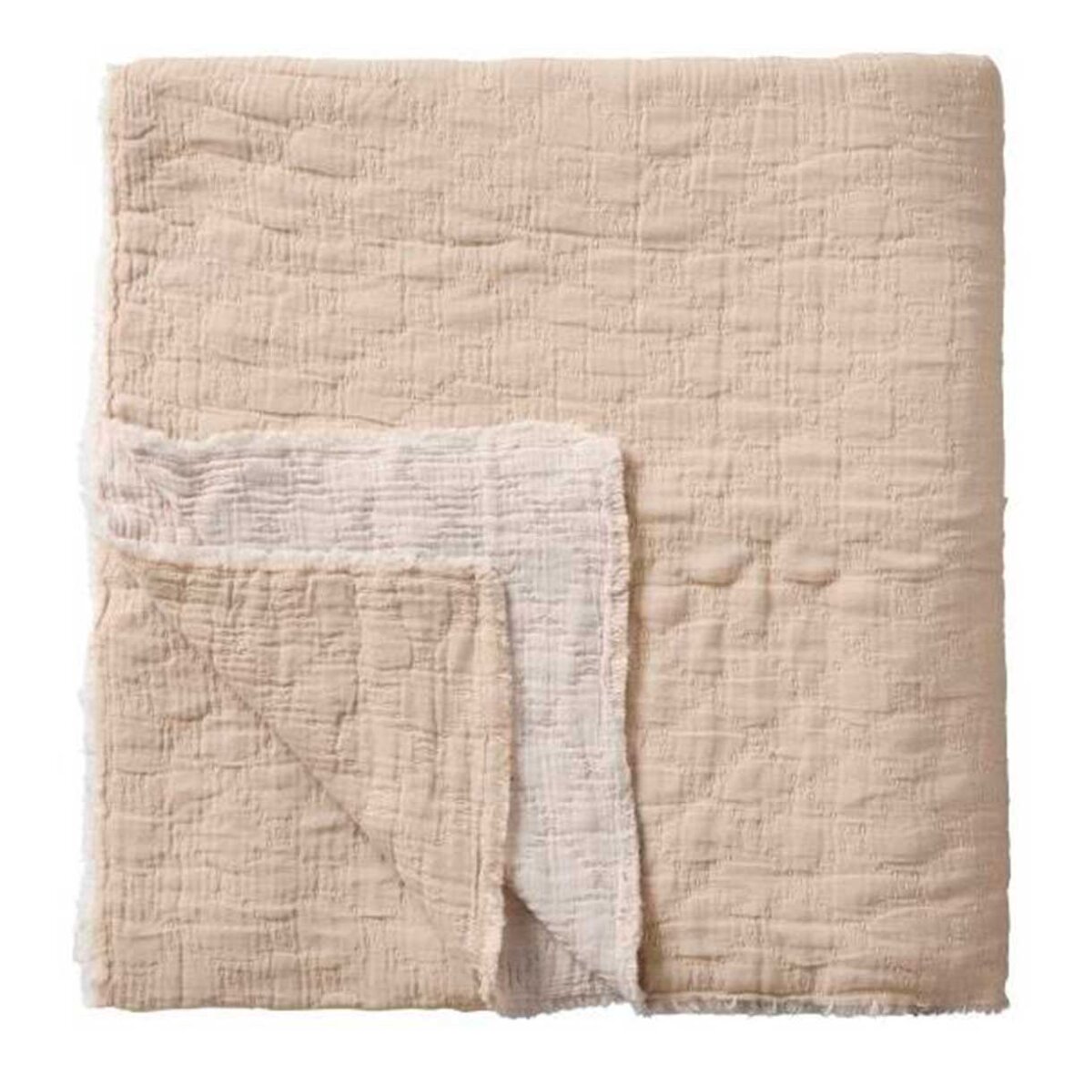 Blødt og indbydende sengetæppe i dobbeltvævet bomuld med en let vatteret struktur, der giver et elegant og behageligt udtryk. Den diskrete ternede stikning og de afdæmpede farver skaber en rolig og tidløs atmosfære i soveværelset.