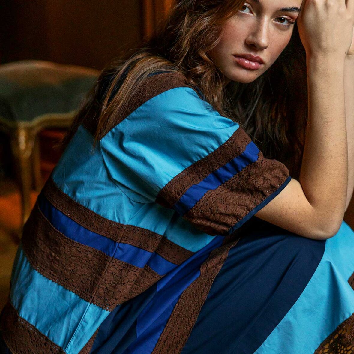 Oversize midi-kjole i smukke farver med rund hals. Kjolen har et oversized look og albuelange ærmer.