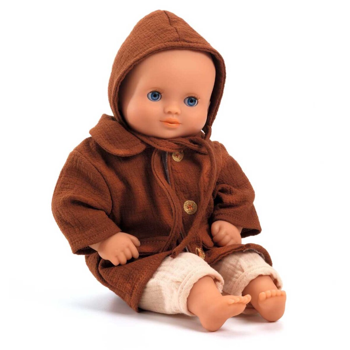 På en blæsende efterårsdag er det skønt med en dejlig, lun frakke til dukken. Dette fine sæt fra Djeco’s Pomea-serie holder dukken varm og stilfuld på samme tid. Perfekt til leg, hvor årstiderne skifter, og dukken skal klædes på til efterårsvind og kølige dage.