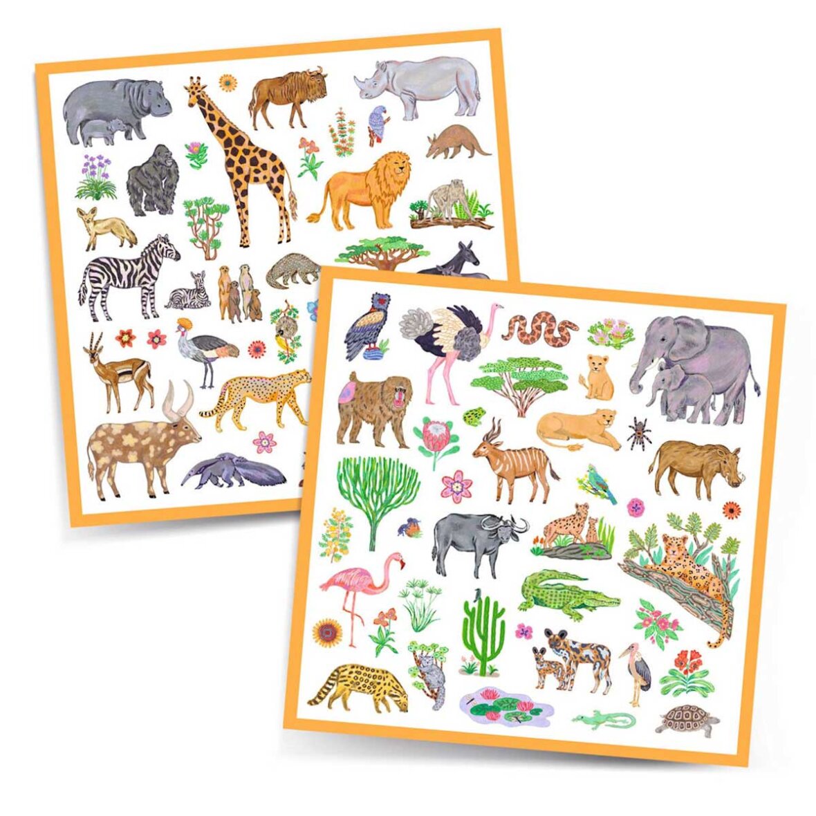 Oplev Afrikas vilde og farverige dyreliv med dette sæt med 160 klistermærker af eksotiske dyr! Her finder du alt fra majestætiske løver og elegante zebraer til elefanter, turakoer, bongoer og watusier. Børn kan slippe fantasien løs og skabe deres egne safariscener eller dekorere tegninger, notesbøger og kort.
