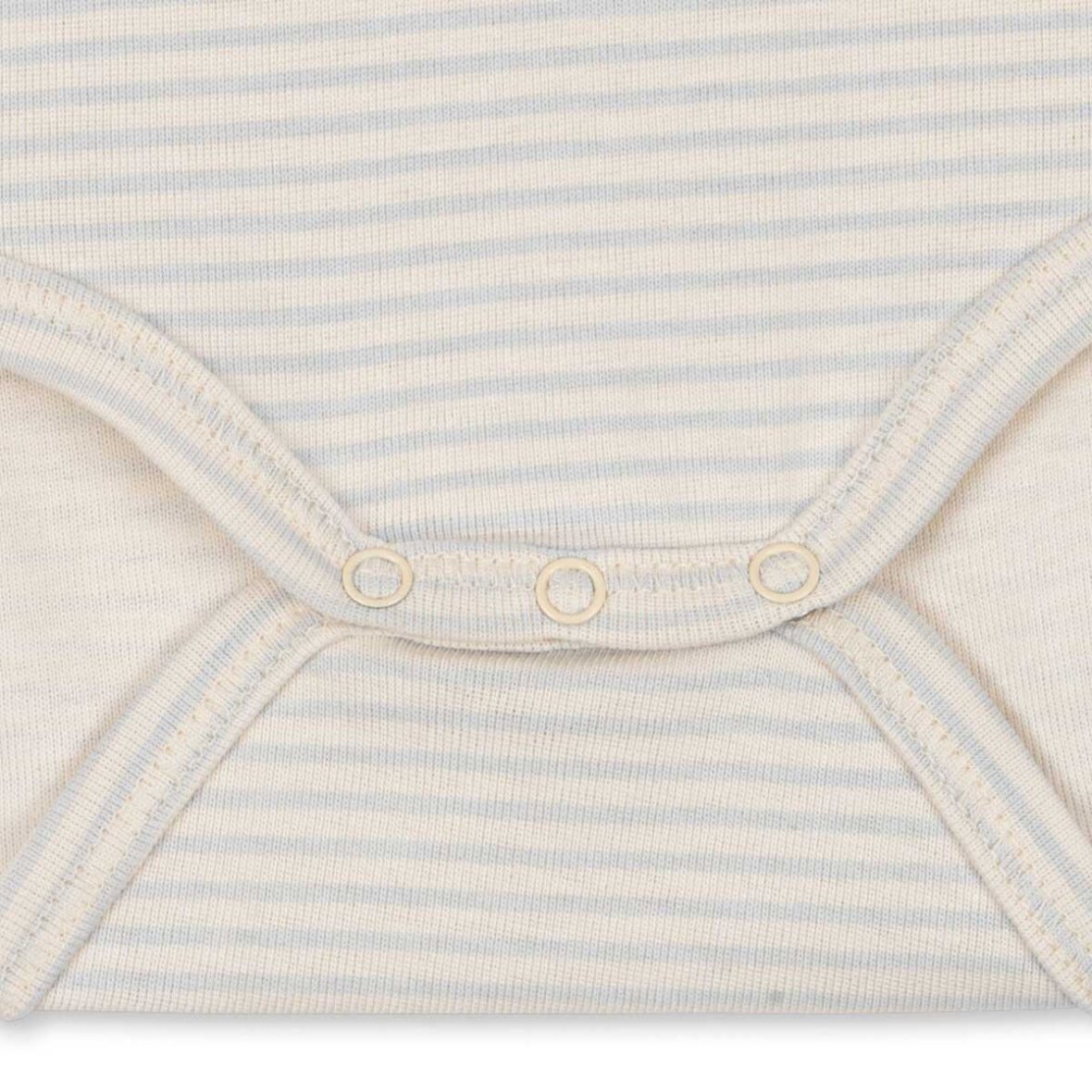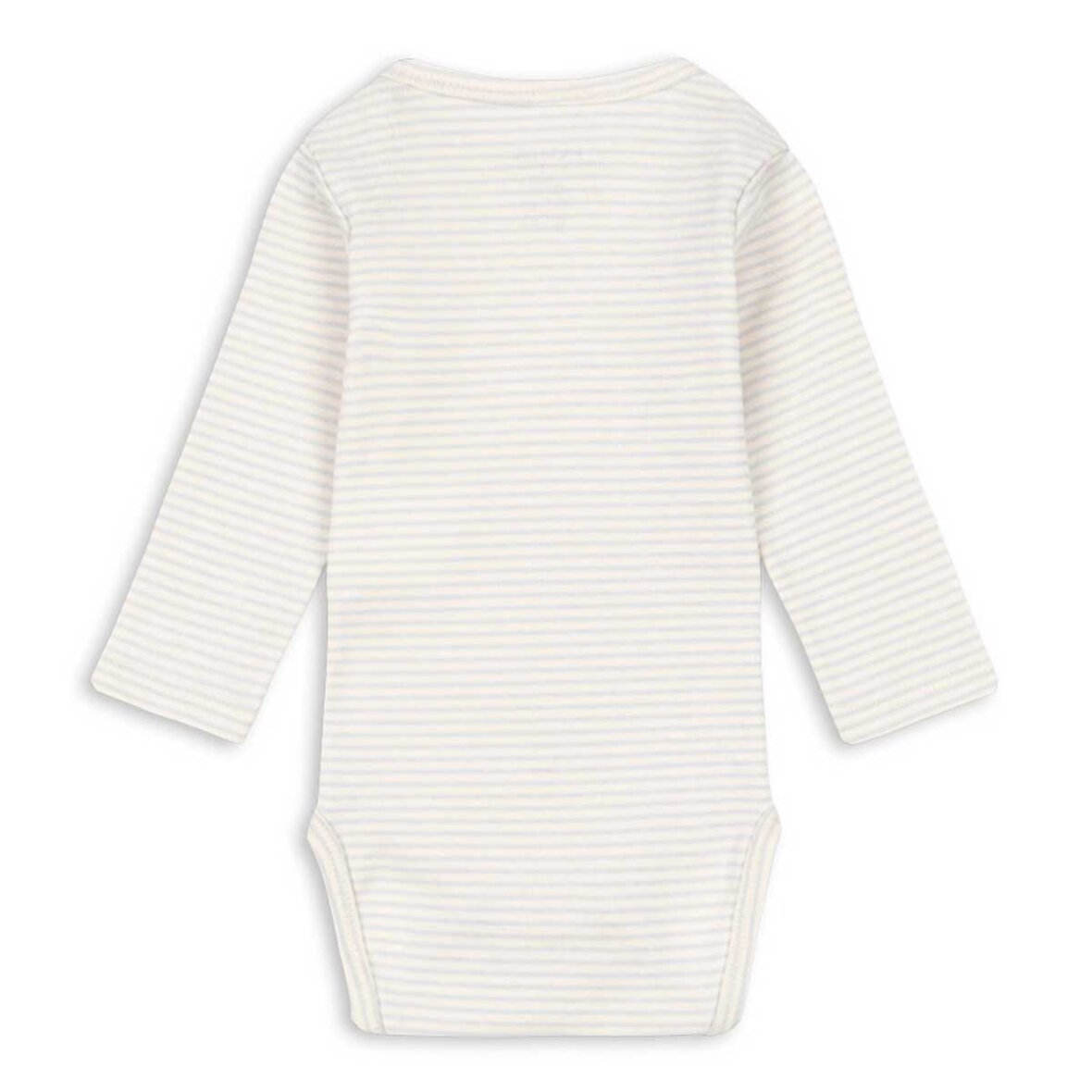 Bodyen har en smart kuverthals, som gør påklædning nem, samt trykknapper mellem benene, der gør bleskift hurtigt og praktisk – en funktionel basisdel i babys garderobe.