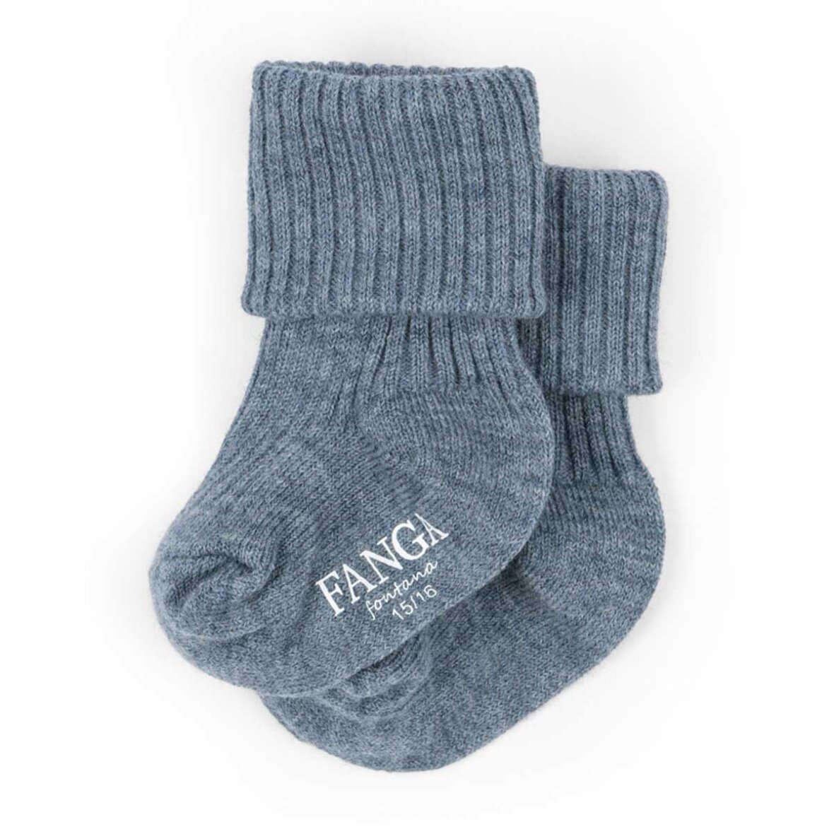 Disse lette strikkede sokker er lavet af blød uld, som holder små fødder varme og komfortable.