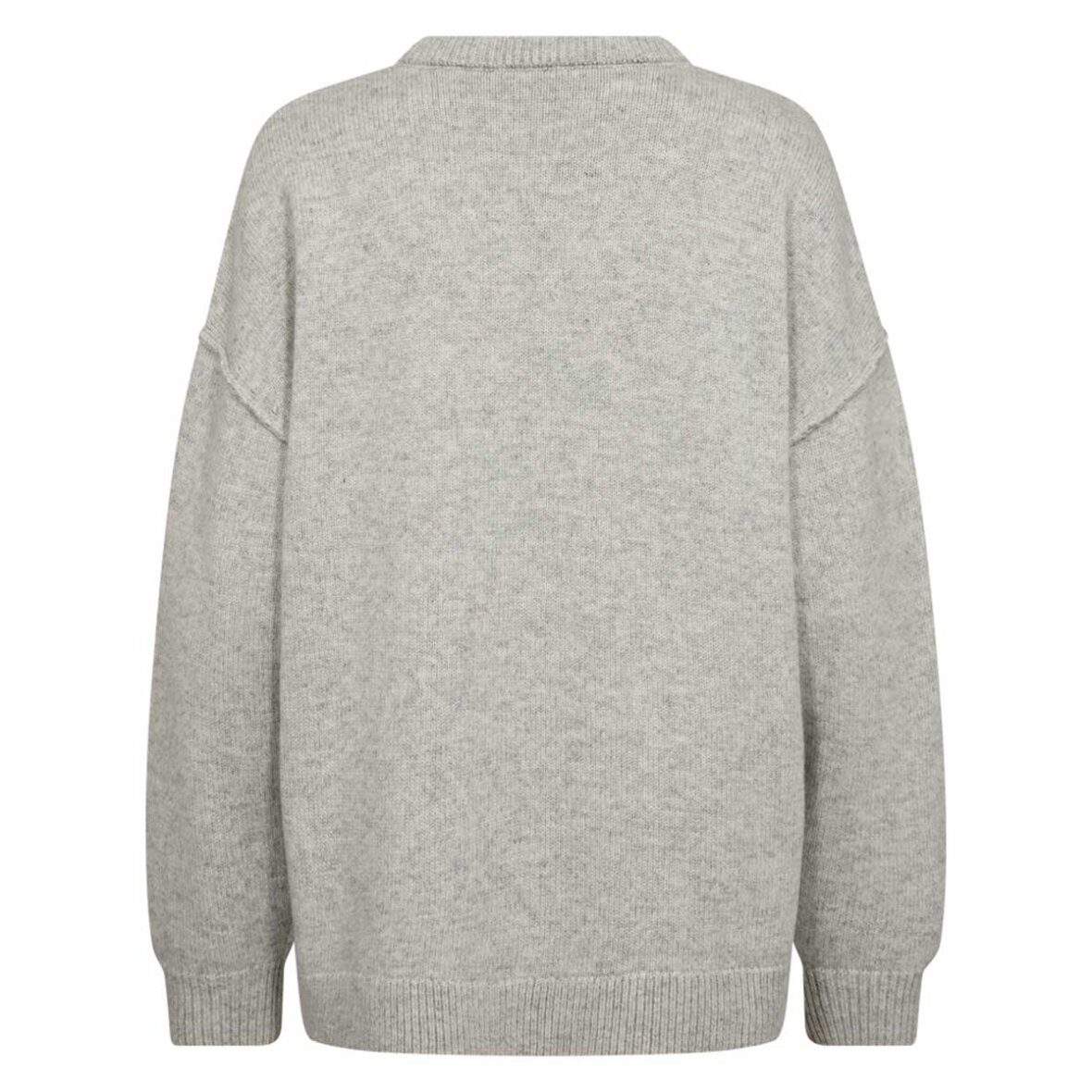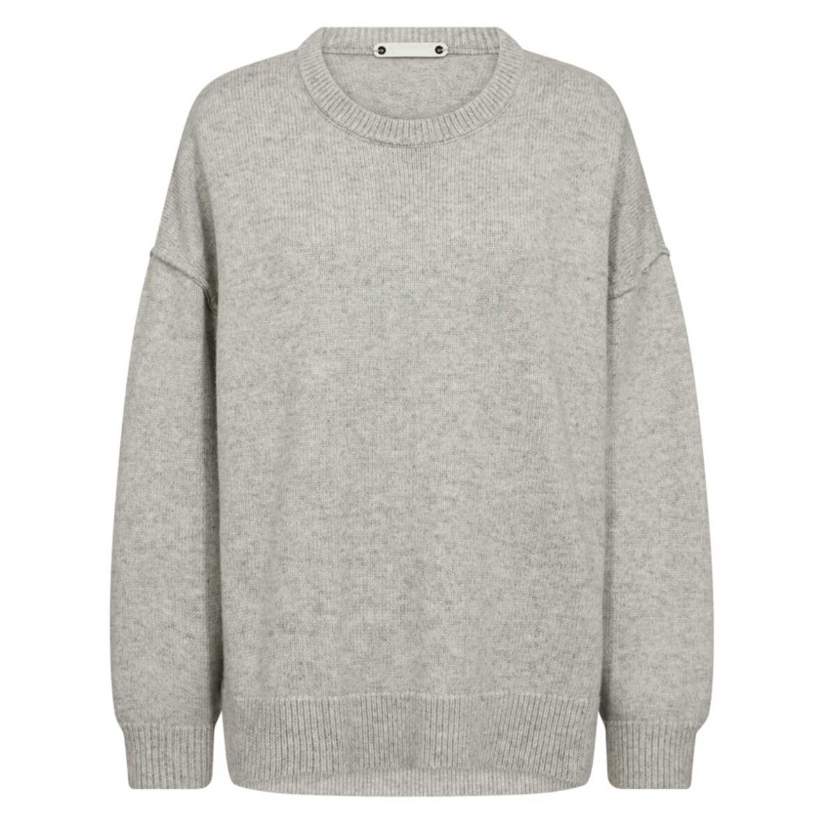 Maja Slit O-Neck er en oversized striktrøje fra Co' Couture i en klassisk grå melange. Trøjen har en ribstrikket rullekrave og sænkede skuldre, som giver et afslappet fit. Ærmerne er lavet med dekorative udvendige syninger, og der er korte slidser i siderne, hvilket giver trøjen et let og moderne look. Længden er en smule længere bagpå for at skabe en balanceret silhuet.