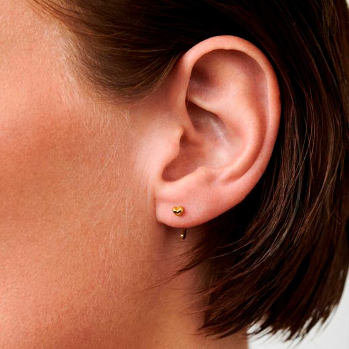 Smukke creoler med et lille, chunky hjerte, der diskret titter frem på øret. Hjertet måler 3,5 mm, og selve creolen har en diameter på 9 mm. Den blanke overflade reflekterer lyset elegant i de buede kanter og giver et sofistikeret look. Brug dem alene eller kombiner med andre øreringe for et personligt udtryk.