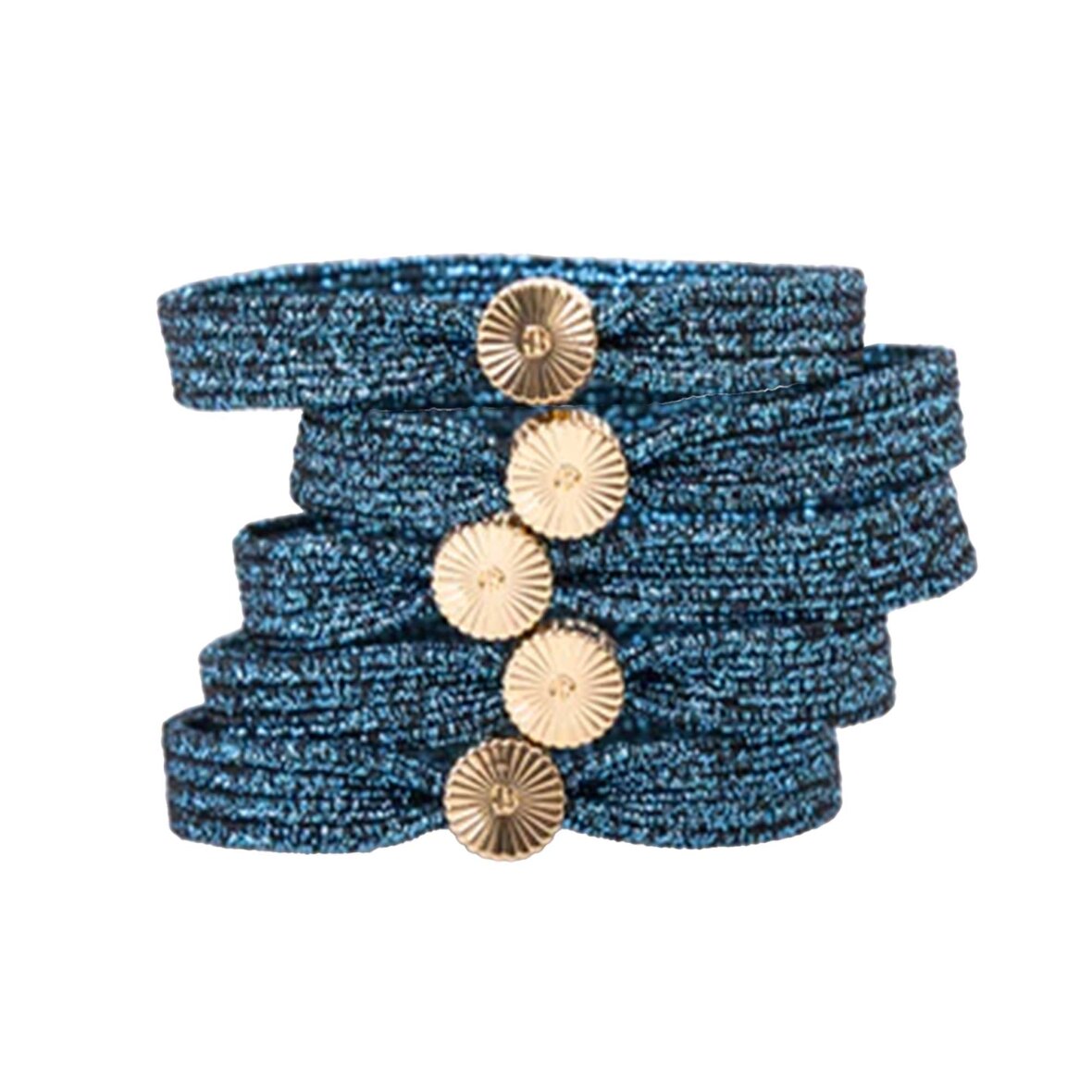 'Midnight Blue'-elastikken omslutter dit hår som en stjerneklar nattehimmel. Den dybe mørkeblå tone er gennemvævet af funklende tråde, der leder tankerne mod stjerneskud, mens den gyldne detalje tilfører et strejf af elegance. Brug den til at give dit look et mystisk og smukt præg, hver gang du træder ud ad døren.
