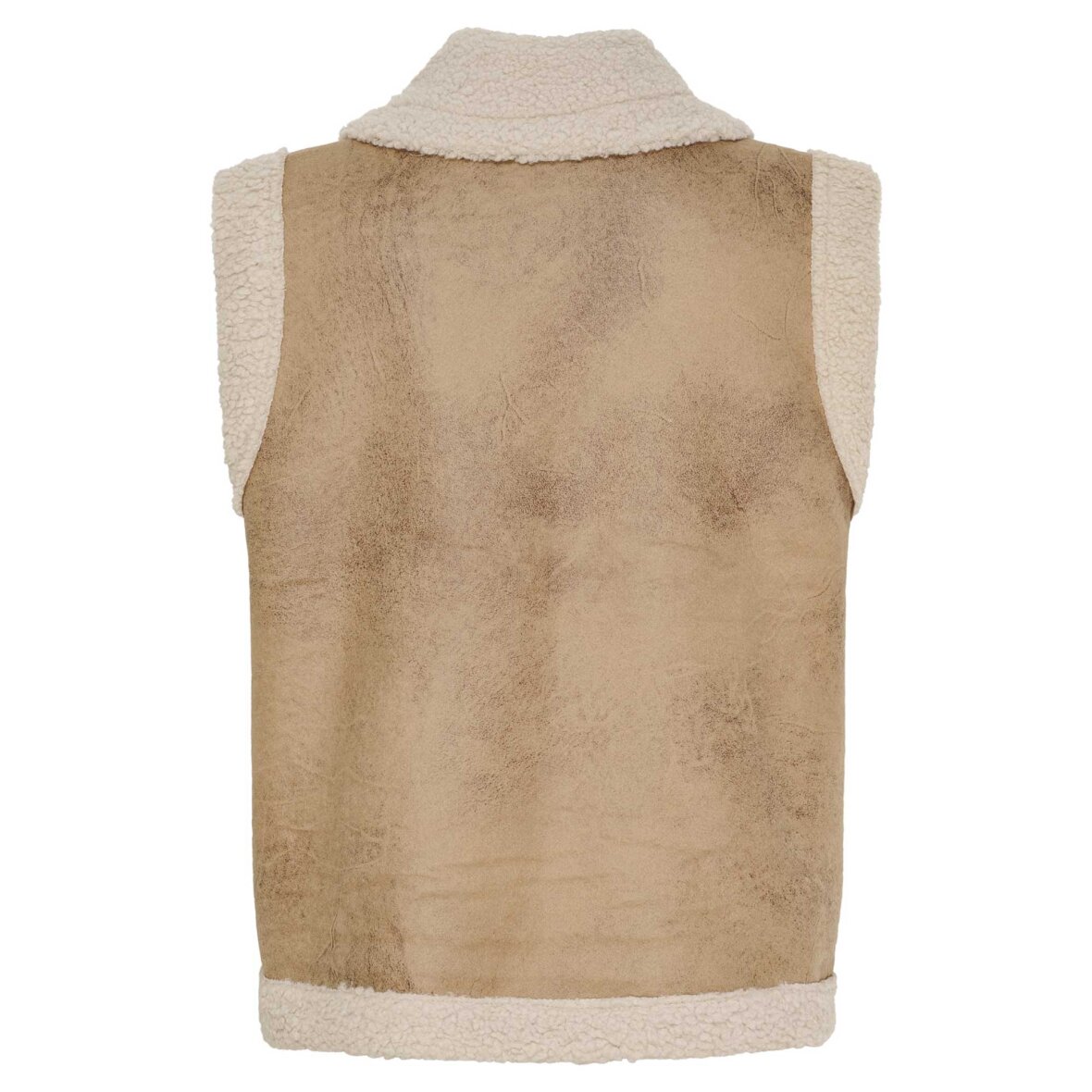 Cool vest i læderlook med blødt teddyfoer, lommer foran, lynlås og krave. Perfekt over en bluse eller strik til efteråret.