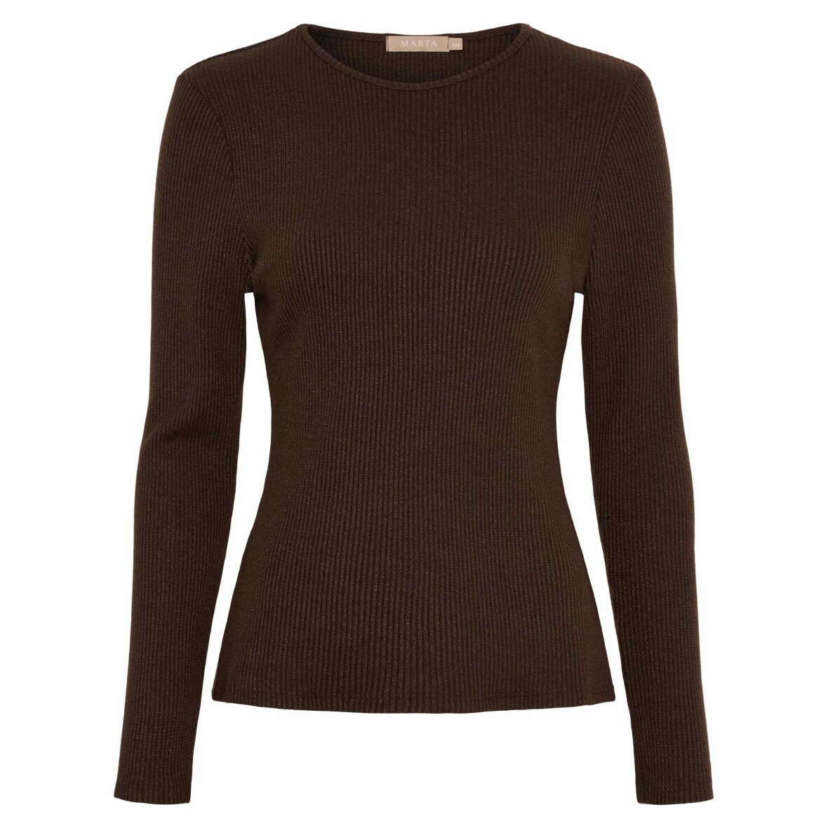 Fin basisbluse med lange ærmer og et diskret glimmerlook. Den tætsiddende pasform og ribbede kvalitet gør den både komfortabel og stilfuld. Perfekt at bruge alene eller som en del af et lag-på-lag outfit.