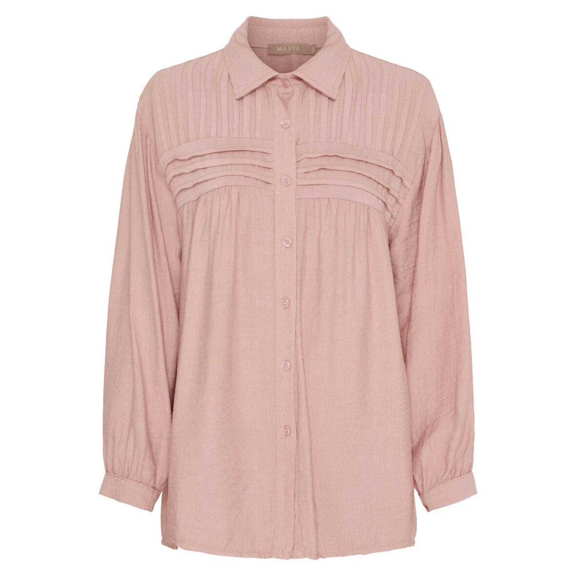 Elegant bluse med fine detaljer og gennemgående knapper foran. Den løse pasform gør den nem at style og perfekt til enhver anledning – både til hverdag og mere festlige outfits.