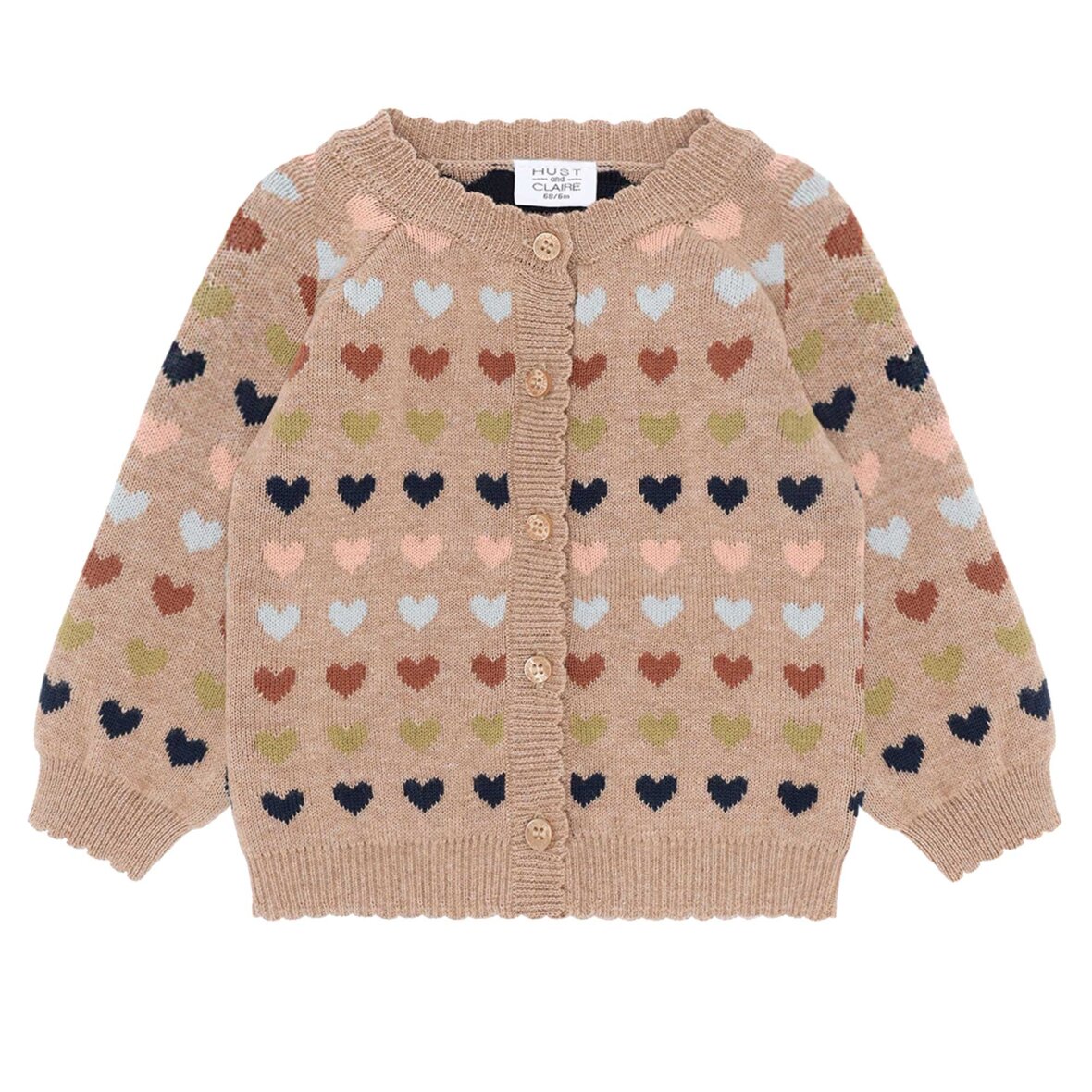 Sød og varm cardigan med hjerteprint, perfekt til kølige dage og layering.