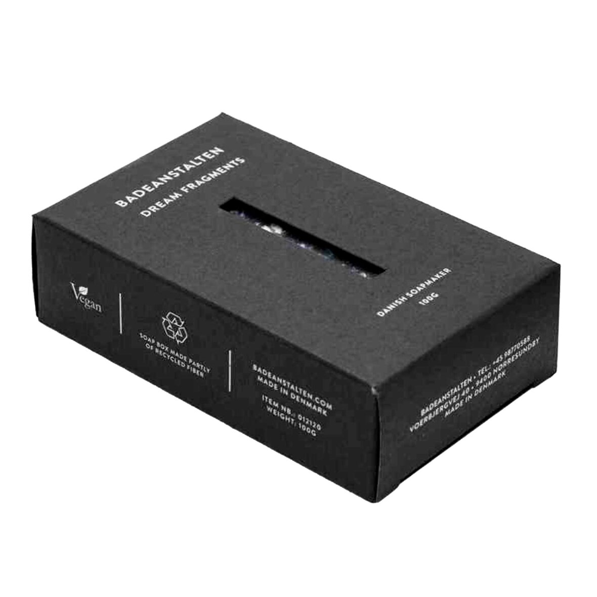 Drømmefragmenter er en håndlavet sort sæbe med aktivt kul, der effektivt renser huden for snavs og olie. Den har en frisk og syrlig duft af æterisk citrongræs, og den fugtgivende formel med vegetabilske olier og glycerin sikrer blødhed og cremet skum. Kan bruges til hænder, krop og ansigt.