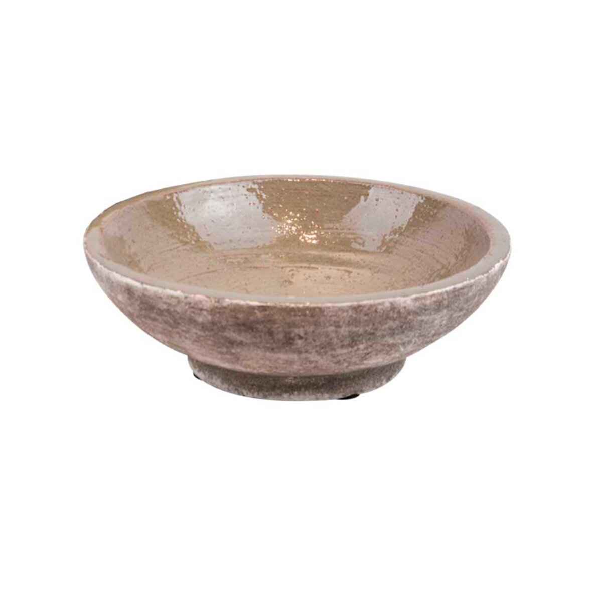 Skål i olivengrøn keramik med rustikt udtryk. Fremstillet til dekorativ brug, eksempelvis til planter, løg eller sæsonbetonede arrangementer.