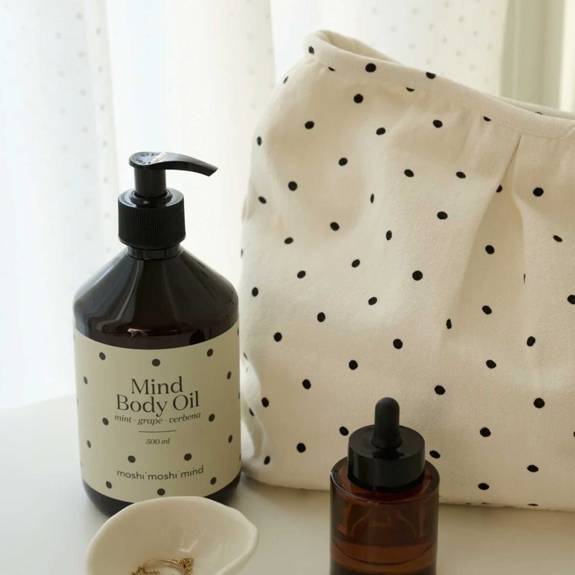Rummelig toilettaske med lynlås i slidstærk, økologisk bomuld. Designet med vores karakteristiske signaturprikker og perfekt til både rejser og hverdagsbrug. Brug den som makeuptaske, toilettaske eller til praktisk opbevaring på badeværelset.