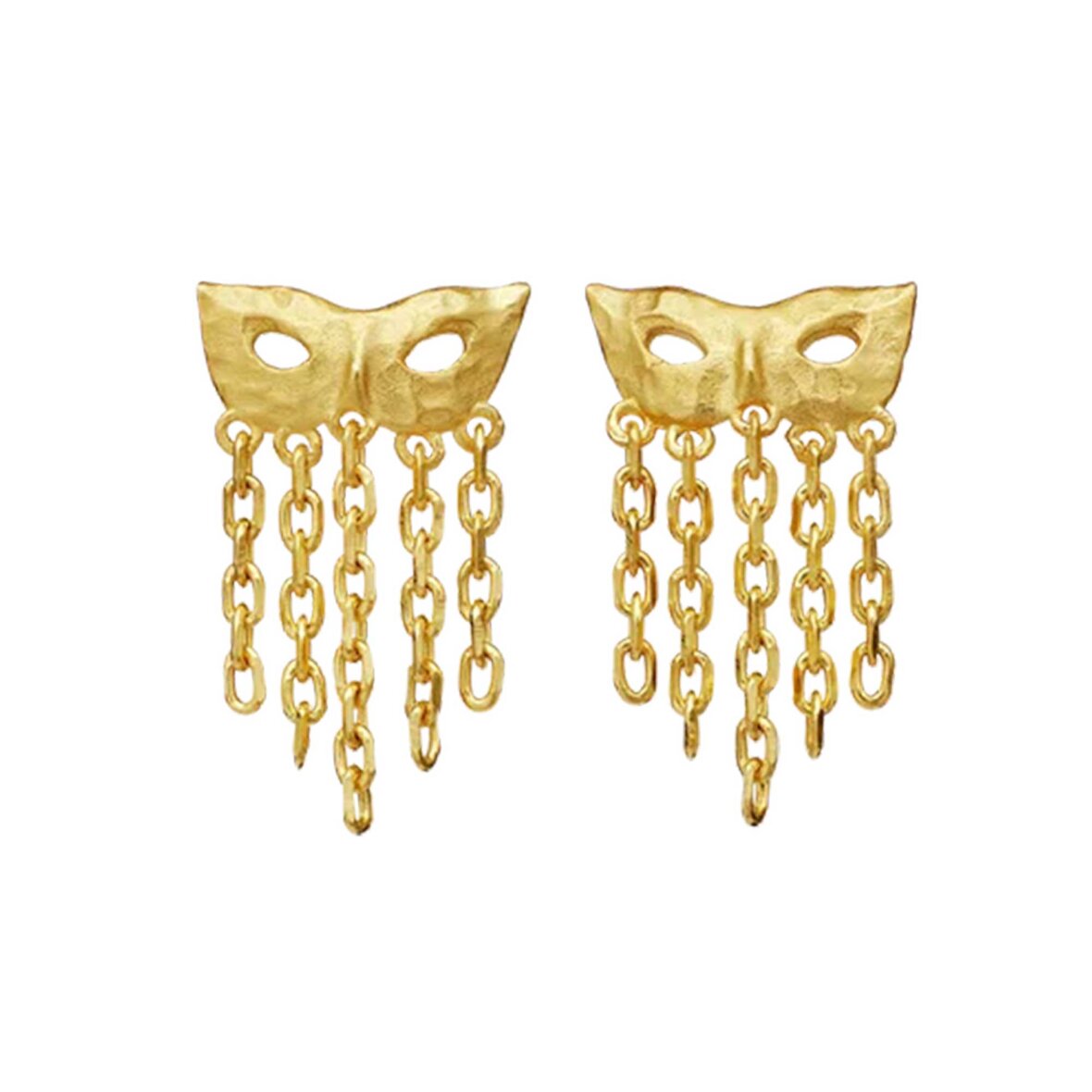 Celare øreringene fra Maanesten er et symbol på modet til at vise sit sande jeg. Det elegante design med en gylden maske og fine kædedetaljer giver et poetisk og teatralsk udtryk, der tilfører dit look et strejf af mystik og personlighed.