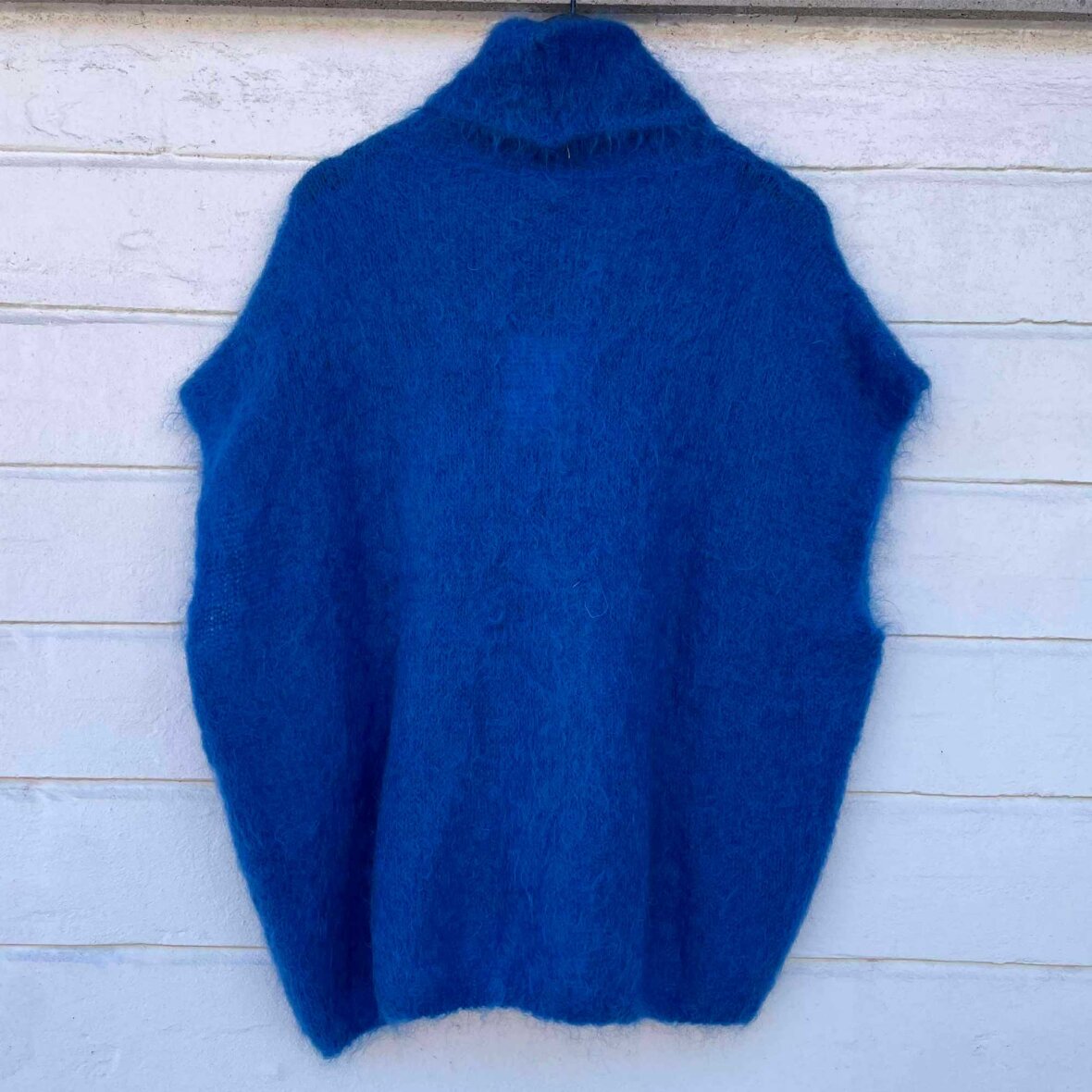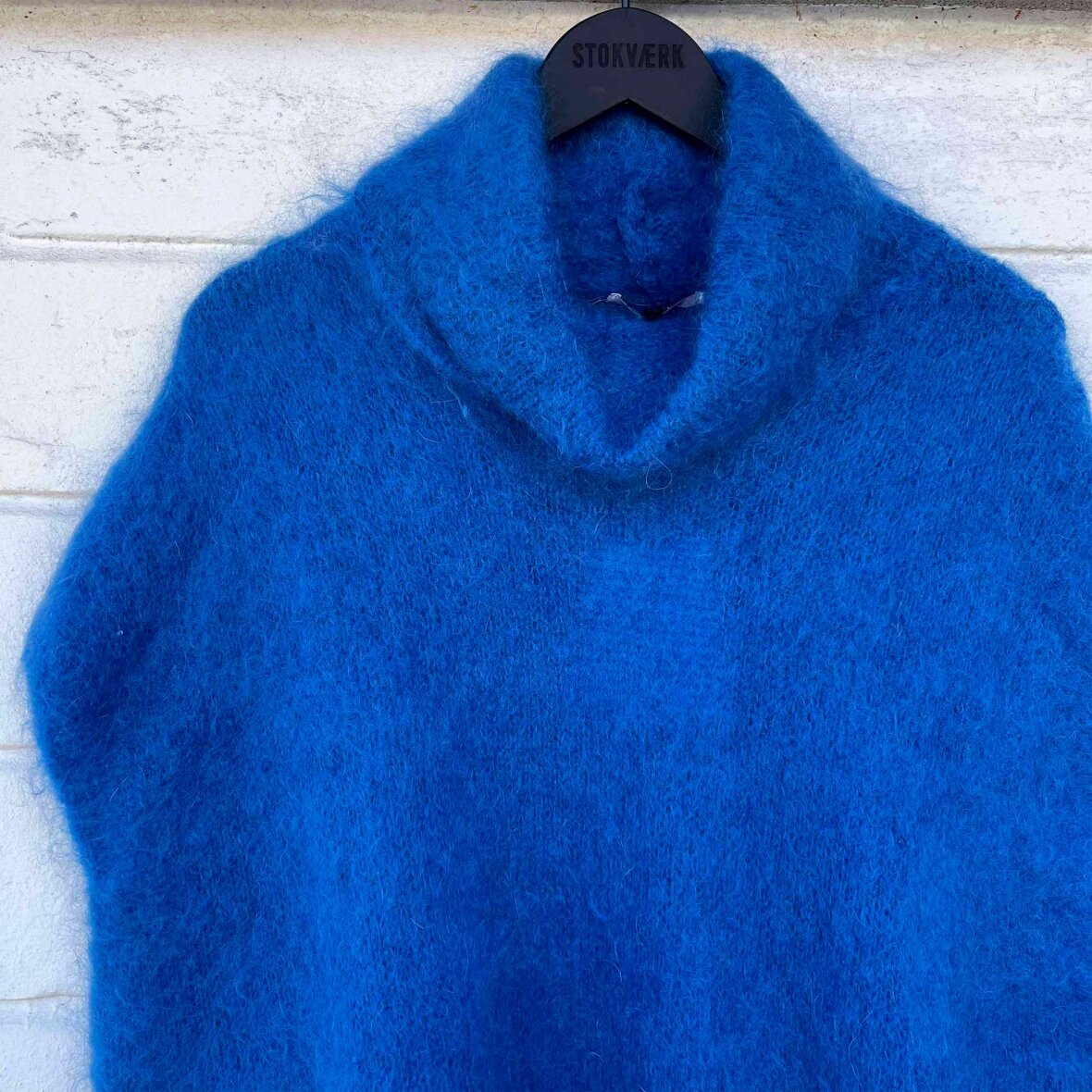 Blød og stilren strik med korte ærmer og en moderne høj hals. Halsen foldes og giver et chunky look. Perfekt til lag-på-lag look eller alene på kølige dage. Den har en smuk blå farve, der passer super godt til jeans.