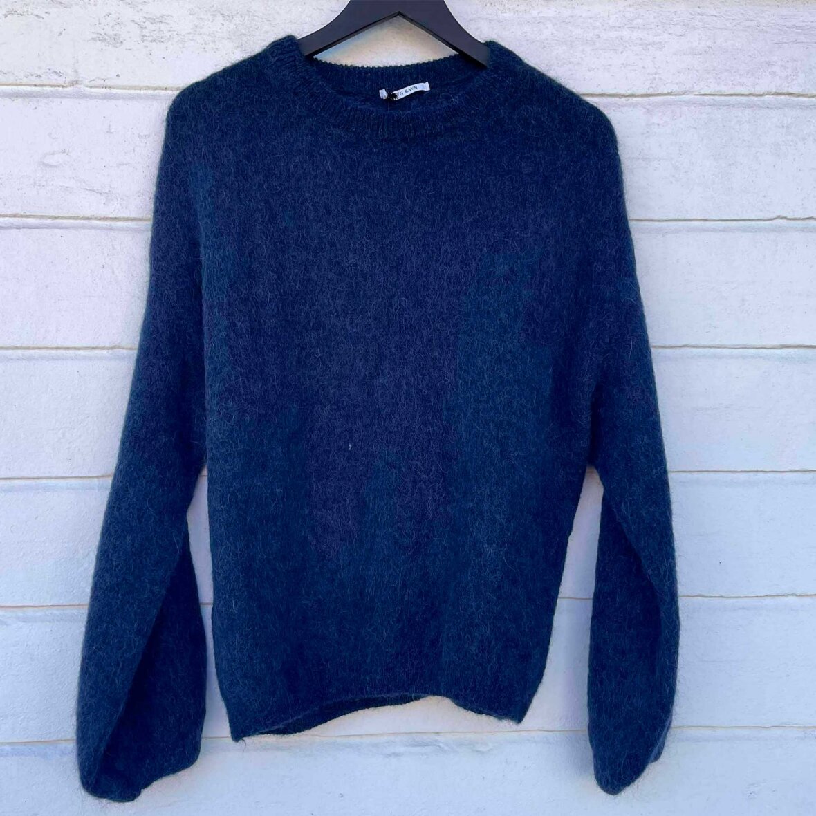 En flot strik med klassisk snit. Den har en rund hals med rib samt en smal ribkant i bunden. En elastik kant afslutter ærmet. Den er fluffy og langhåret i looket. Strikken er onesize.