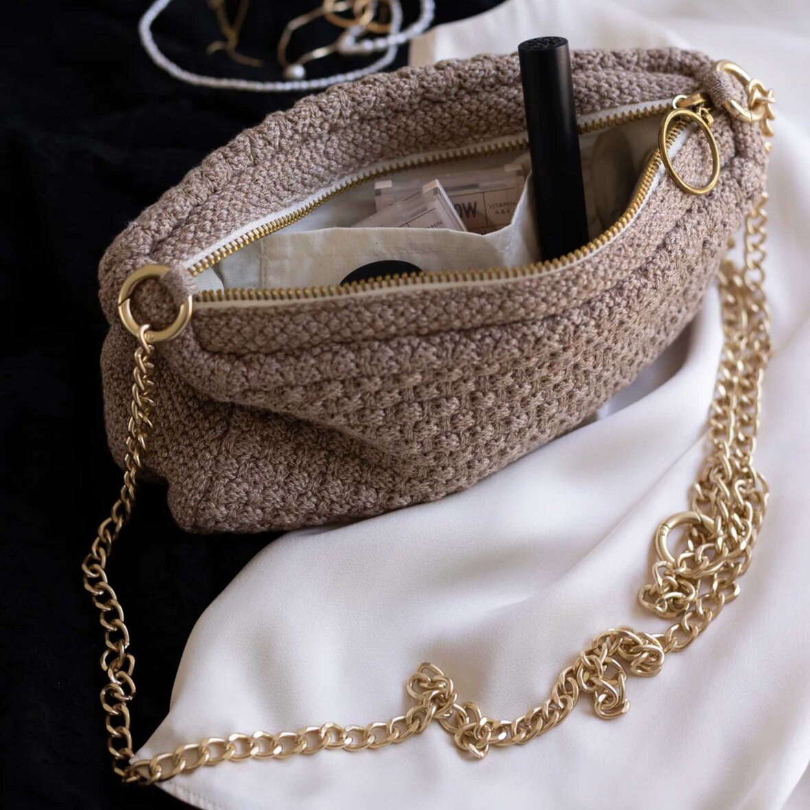 KNITTED CLUTCH CROSSBODY CHAIN | TIGER MELANGE