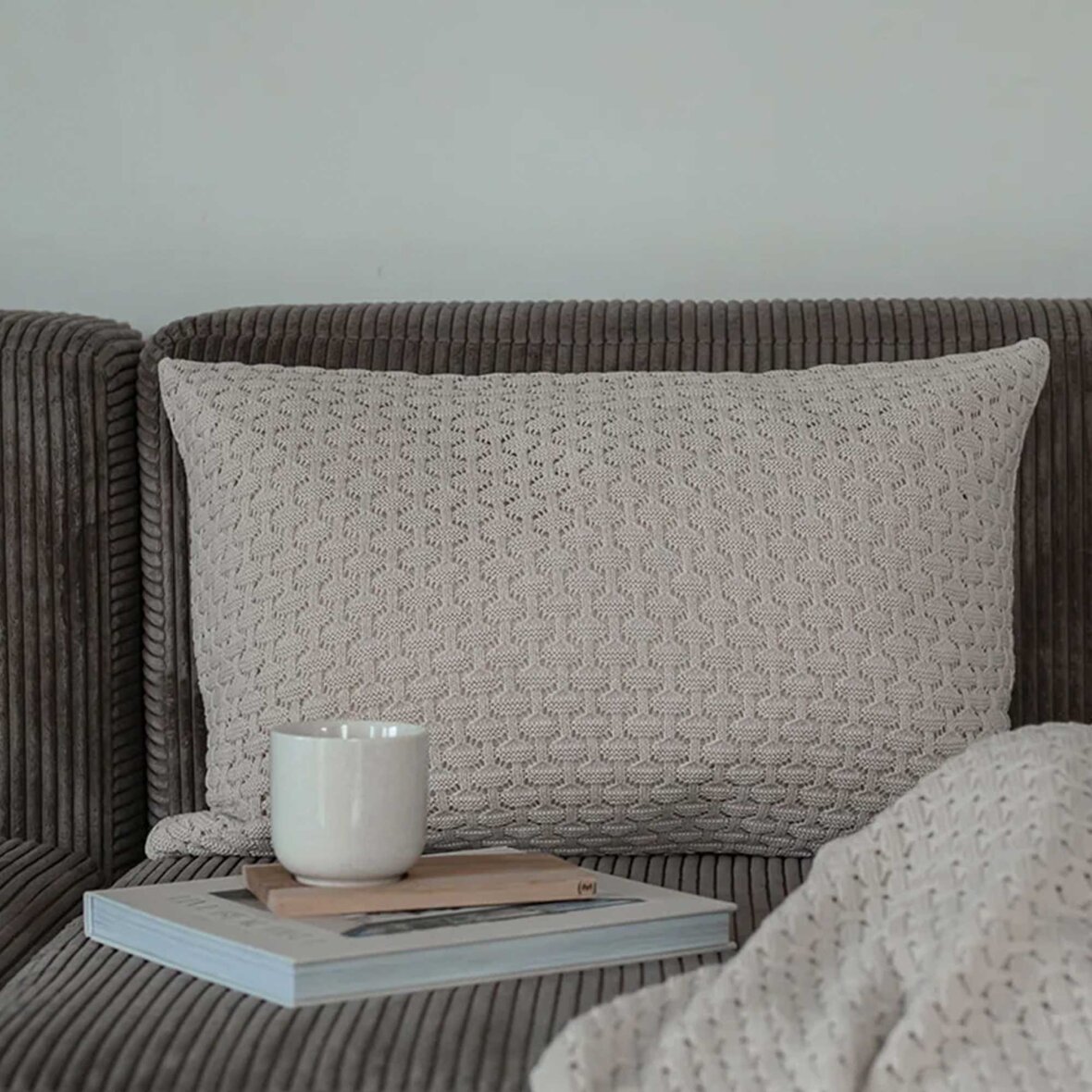 Til dem, der elsker hjemlig hygge! Denne strikkede pude i let hulmønster er både dekorativ og behagelig. Den passer perfekt i sofaen sammen med Mountain plaiden og tilføjer varme og stil til hjemmet. Puden måler 60 x 40 cm og fås i den smukke lyse Beige Melange, der passer ind i alle moderne hjem.