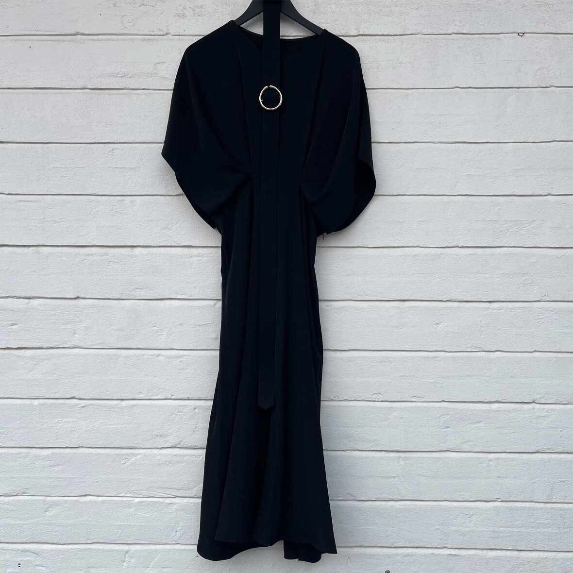 Smuk elegant kjole fra Imperial. Kjolen har en mellemlængde og et klassisk snit. Den har en rund halsudskæring som er pyntet med en lille knap. Et slids foran gør kjolen nem at bevæge sig og danse i. Til kjolen medfølger et bælte med guld detaljer, som markerer taljen. Kjolen har en usynlig lynlås i siden, så den også er nem at få på og af.